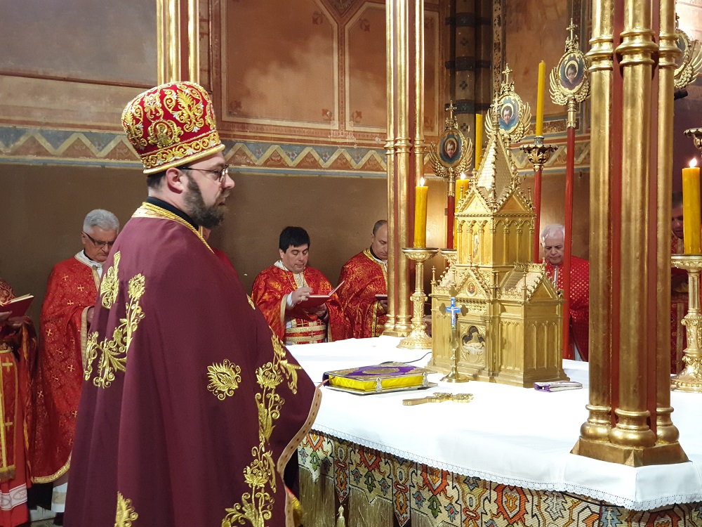 Na Veliki četvrtak, 18. travnja 2019., u grkokatoličkoj katedrali Presvete Trojice u Križevcima, ordinarij Križevačke eparhije mons. Milan Stipić služio je Božansku liturgiju sv. Bazilija Velikoga zajedno sa svim svećenicima eparhije koji su pristigli iz svih triju vikarijata: žumberačkog, slavonsko-srijemskog i bosansko-hercegovačkog. Liturgiju je pjevao Katedralni zbor Križevci. Okupljenim svećenicimai vjernicima ordinarij o. Milan je protumačio teološku dubinu i poruku svetog i velikog tjedna, kao i smisao i vrijednost svećeničkog poslanja i poziva: "Proslavivši Lazarovu sobotu i Cvijetnicu završili smo svetu četrdesetnicu i ušli smo u sveti i veliki tjedan, tjedan muke Gospodnje. Vrijeme Velikoga posta u kojem smo se intenzivno pripremali za Pashu Kristovu završavamo. u tom vremenu bili smo posvećeni pogledu u same sebe, preispitivali smo svoje mane i nedostatke, vodili smo borbu sa svojim grijesima i strastima, mjenjali smo svoj karakter i grijehom ranjenu našu ljudsku narav.