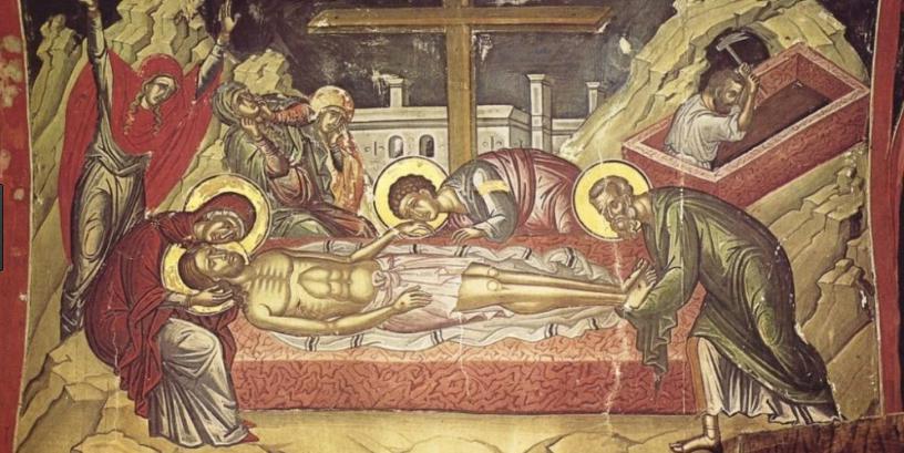 Tebe koji se zaodjevaš svjetlošću kao plaštem, Josip s Nikodemom skine s križa i vidjevši te mrtva, gola i nesahranjena, samilosno proplakavši i jecajući govoraše: Jao meni, premili Isuse, kojega sunce upravo gledajući viseći na križu potamni; i zemlja se od straha potrese a hramski se zastor razdera na dvoje! Evo sada gledam tebe, koji si radi mene smrt podnio! Kako ćut te sahraniti, Bože moj, i plaštanicom umotati? Kako ću rukama dotaknuti tvoje neraspadljivo tijelo? Kakvim pjesmama ću opjevati tvoj odlazak, Milosrdni? Veličam muku tvoju i pjesmom slavim tvoj ukop i uskrsnuće tvoje, vapijući: Gospode, slava tebi!