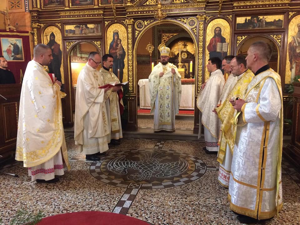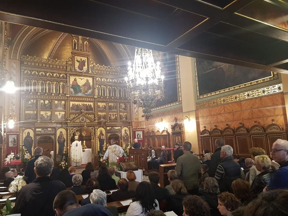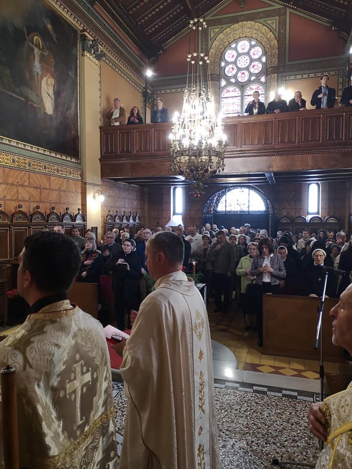 U nedjelju, 12, svibnja 2019., održana je vanjska svečana proslava blagdana svete braće Ćirila i Metoda, ravnopaostolnih učitelja slavenskih naroda, suzaštitnika Europe i naslovnika grkokatoličke konkatedrale sv. Ćirila i Metoda u Zagrebu. Blagdan se naime slavi 11. svibnja, ali je uobičajeno slavlje prebaciti na nedjelju poslije blagdana. Svečanu liturgiji u ispunjenoj gornjogradsjih grkokatoličkoj ljepotici sv. Ćirila i Metoda služio je mons. Milan Stipić, apostolski upravitelj i ordinarij Križevačke eparhije, zajedno sa zagrebačkim župnikom o. Danijelom Hranilovićem, o. dr. Tarasom Barščevskim, o. Mihajlom Simunovićem, župnikom Križevaca, o. Željkom Pajićem, župnikom Karlovca, o. Danielom Vranešićem, župnikom Samobora te rimokatoličkim svećenikom i župnikom Šestina velečasnim Robertom Šreterom, koji je i propovijedao. Đakonsku službu vršio je Livio Marijan, eparhijsk kancelar, a sav je puk pjevao narodni prostopjenijem. Velečasni Šreter je u homiliji povezao Evanđelje Nedjelje o uzetom s misijom sv. Braće među Slavenima, naglasivši kako su slavenski narodi prije navještaja kršćanske vjere od svojih apostola Ćirila i Metoda poput uzetoga bolesnika iz Evanđelja ležali u mraku neznanja. Ćirilometodska baština je dragocjeno bogatstvo hrvatskog i durgih slavenskih naroda jer je plod trajne evanđeoske inkulturacije u kulturu i život brojnih naroda. Posebno je pozvao grkokatolike da se ne srame svoje obredne posebnosti, već naprostiv da ju žive s ljubavlju i ponosom (snimak završnog dijela propovijedi vidi na linku dolje). Na kraju slavlja nazočnima se obratio ordinarij Križevačke eparhije čestitavši ovaj veliki blagdan svima i zaželjevši ćirilo-metodskoj župi obilje blagoslova i rasta po zagovoru svete Braće. O. Danijel Hranilović, zagrebački župnik, na kraju se zahvalio Ordinariju, braći svećenicima, propovjedniku i napose brojnim vjernicima i župljanima koji su svojom pomoći pridonijeli proslavi svoga župskoga blagdana te sve pozvao na zajednički stol poslije liturgije. Liturgiju je uživo prenosio Radio Marija.