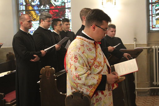Liturgijskim pjevanjem i bogoslovskim zborom, pri čemu su se pjevali tradicionalni ukrajinski napjevi, ravnao je Bruno Diklić, cantus magister Sjemeništa. On je ujedno otpjevao i čitanje iz Djela apostolskih prema specifičnom žumberačkom napjevu. Bogoslovskom zboru se ovom prilikom pridružio i rektor Sjemeništa dr. Stjepan Radić. Liturgijski jezici pjevanih dijelova bili su hrvatski te manjim dijelom grčki, crkvenoslavenski i ukrajinski. Na bogoslužju je sudjelovala nekolicina umirovljenih svećenika iz Svećeničkog doma u Đakovu, studenti i studentice laici s Katoličkog bogoslovnog fakulteta u Đakovu te časne sestre koje djeluju u Sjemeništu.
