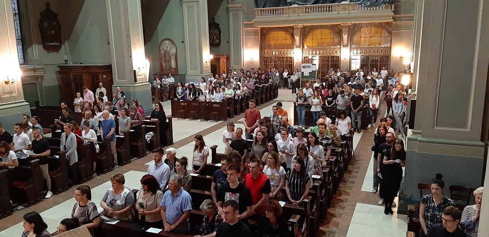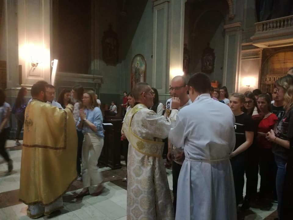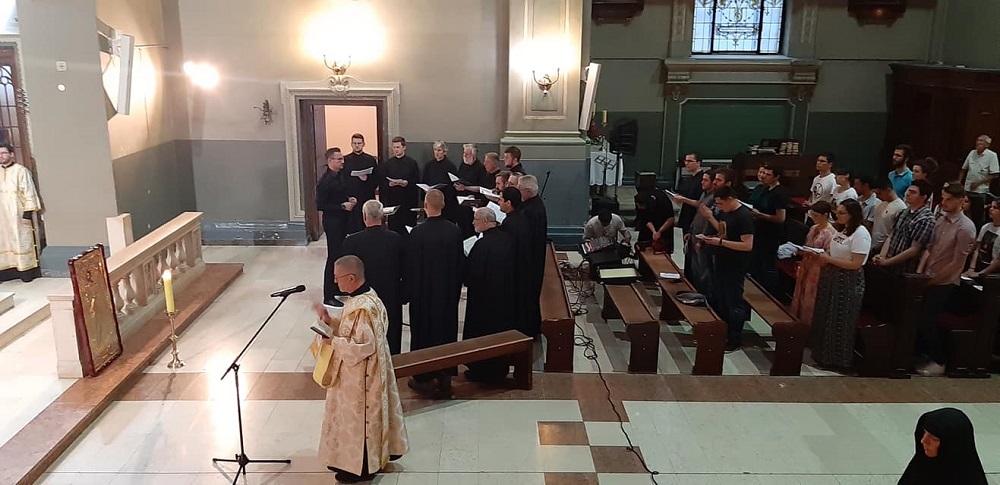 U petak 7. lipnja 2019., na završetku svetkovine Uzašašća Gospodnjega, koja se slavi osam dana, apostolski administrator Križevačke eparhije o. Milan Stipić, služio je Božansku liturgiju svetoga Ivana Zlatoustoga u Bazilici Srca Isusova u Palmotićevoj u Zagrebu, na kojoj se okupio veliki broj mladih te župe. S o. Milanom su suslužili o. Marjan Jeftimov, dekan Stolnog dekanata i župnik Jatsrebarskog, o. Nenad Krajačić, žumberački dekan i župnik Pribića i Pećnog, o. Ivan Pleše, karmelićanin i đakon Livio Marijan, eparhijski kancelar. Liturgiju je pjevao Muški zbor Ćirilo-Metodova kora, aposluživali su grkokatolički i isusovački bogoslovi i ministranti. Služenje liturgije po bizantskom obredu za mlade koji se okupljaju u bazilici u Palmotićevoj petkom navečer u 20,30 već je postala tradicija i redovito se služi. Govoreći o završetku svetkovine Uzašašća i pripremi za svetkovinu Duhova ordinarij križevački Stipić potakao je okupljene mlade da žive i raste u Duhu Svetom jer to je Božji duh, Božja snaga i Božja sila kojoj nitko i ništa na svijetu nije ravno. Tumačeći naviješteno evanđelje u kojem Isus tri puta pita svoga učenika Petra da li ga ljubi, istaknuo je važnost iskrenog razgovora s Bogom i neprestanog preispitivanja svoga odnosa s njim. S Bogom nema maski, uvijanja i zavaravanja jer pred njim sve to pada, a njegova dobrota i ljubav izazivaju nas na posve jasno i konkretno opredjeljenje. "Petar je pogriješio, pokajao se i evo iskrena i otvorena srca iskazuje svoju ljubav Kristu.