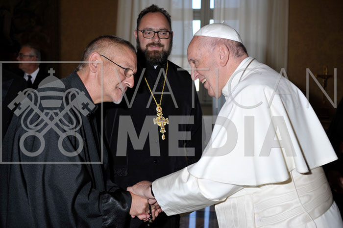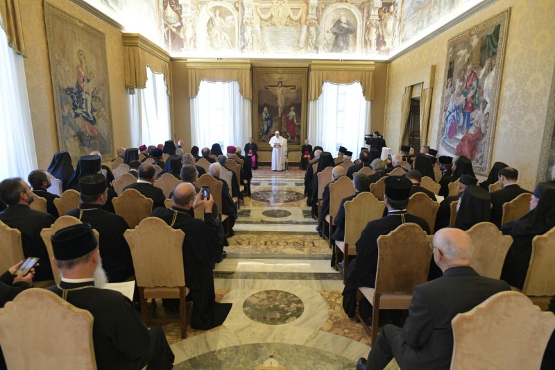 U subotu, na blagdan Uzvišenja svetoga Križa koji se posebno svečano slavi u istočnim katoličkim Crkvama, u Apostolskoj palači, sve sudionike susreta primio je papa Franjo. Obratio im se posebnim riječima, rekavši na samom početku kako je ovaj susret vidljivi znak bogatstva različitosti Katoličke Crkve na Europskom kontinentu, koja nije samo ograničena na latinsku (zapadnu) tradiciju. Spomenuvši svoj pohod Rumunjskoj pred nekoliko mjeseci, gdje je služio božansku liturgiju po bizantskom obredu i proglasio blaženima sedam biskupa-mučenika Rumunjske grkokatoličke Crkve, papa Franjo je rekao da je to bila izvrsna prigoda pokazati koliko su cijela Katolička Crkva i Petrov nasljednik zahvalni za svjedočanstvo vjernosti zajedništvu rimskom biskupu kroz povijest, pa i pod cijenu prolijevanja krvi. Naglasio je da je “katoličko zajedništvo dio vašeg partikularnog identiteta, a nikako ne narušava vaš identitet... Živeći vaše crkvene tradicije u punini, vi se napajate iz istih izvora duhovnosti, bogoslužja i teologije kao i Pravoslavne crkve. Lijepo je zajednički biti svjedocima tako velikih bogatstava. Moguće je i na akademskom području promicati zajedničke programe studija i kulturne razmjene, uključujući osobito mlađe svećenike, tako da budu odgojeni u širini pogleda. Iznad svega i u svemu, pomozimo jedni drugima živjeti u ljubavi sa svima. Ljubav ne poznaje kanonske i jurisdikcijske granice. Boli me kad i među katolicima vidim svađe oko jurisdikcija“ rekao je papa Franjo. Život u ljubavi priprema nas za život u jednom zajendičkom nebu na što smo pozvani, ustvrdio je Sveti Otac, “a tamo Gospod neće tražiti račun o tome koja i kolika područja su bila pod našom jurisdikcijom. Neće nas pitati kako smo pridonijeli razvoju naših nacionalnih identiteta. Naprotiv, pitat će nas koliko smo ljubili bližnjega, svakoga bližnjega... Budite hrabri, draga braćo, koračajte naprijed u duhu zajedništva!“ završio je svoje obraćanje papa Franjo, zamolivši sve za molitve jer su mu, kako je rekao na kraju, jako potrebne.
