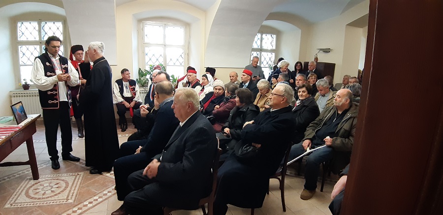 Mons. Stipić je u propovijedi, govoreći o Nedjelji Praotaca, kazao: “Crkva nas na ovu Nedjelju Svetih Praotaca priprema za radosni blagdan Rođenja Kristova. Sveti Praoci među kojima su Abraham, Mojsije i ostali proroci tragali su za istinitim Bogom. On im se je objavljivao i poučavao ih o svojim spasiteljskim naumima. Međutim, premda su oni bili pravednici, nisu mogli ući u Carstvo nebesko, već je Krist taj koji je donoio puninu radosti i spasenja. Zato smo mi povlaštena pokoljenja je smo rođeni u vremenu kad se Bog u potpunosti objavio i ispunio naum našega spasenja. Adventsko i božićno slavlje danas doživljava veliku komercijalizaciju. Ali mi kršćani koji znamo bît i dubinu otajstva rođenja Kristova pristupamo ovom radosnom blagdanu tako što se pripremamo prije svega duhovno, kroz ispovijed i pričest te istinsko življenje Evanđelja“. Osvrnuvši se na proslavu 10. obljetnice Udruge “Žumberački Uskok“, mons. Stipić je rekao kako se raduje njihovom djelovanju i naglasio da “slavni žumberački Uskoci ne bi bili u stanju izdržati strahote ratovanja, glad, progonstvo i ostale nevolje da nisu kao okosnicu svoga života imali istinsku vjeru u Boga.“ Na svršetku Liturgije Udruzi je čestitao i zagrebački župnik o. Danijel Hranilović, naglasivši kako rado sudjeluju na liturgijskim slavljima u svojim lijepim nošnjama. Poslije liturgije održana je u velikoj dvorani Grkokatoličkog sjemeništa skupština društva “Žumberački Uskok“ na kojoj je sudjelovao i valdika u miru mons. Nikola Kekić koji je održao kratko predavanje o povijesti Eparhije i Grkokatoličkog sjemeništa u Zagrebu. Na skupštini su govorili Milan Radić, predsjednik Udruge i Željko Hranilović, tajnik Udruge. Posebno dirljivu besjedu uputio je Nino Škrabe, član Matice Hrvatske – Ogranak Jastrebarsko, naš ugledni književnik, spisatelj i dramaturg. Stihove pjesama s žumberačkom tematikom recitirao je Milan Delivuk, a sjednicu je uzveličalo Gradsko pjevačko društvo “Javor“ iz Jastrebarskog, izvedbom spleta domoljubnih i duhovnih skladbi. Nakon skupštine uslijedio je zajednički domjenak (foto: Danijel Hranilović i Livio Marijan)