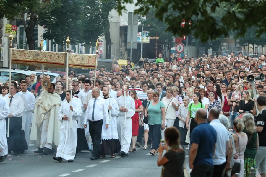 U četvrtak, 29. lipnja 2019., na blagdan Presvetoga Tijela i Krvi Kristove (Tijelovo), mons. Milan Stipić, apostolski administrator Križevačke eparhije, na poziv otaca isusovaca iz Palmotićeve, predslavio je svečano euharistijsko slavlje u Bazilici Srca Isusova u Palmotićevoj i po tom tijelovsku procesiju ulicama zagrebačkog Donjeg Grada. U procesiji su sudjelovali brojni svećenici te veliko mnoštvo vjernika kao i Kravat pukovnija, Čuvari Kristova groba bazilike Srca Isusova, počasna vatrogasna postrojba vatrogasne zajednice grada Zagreba, puhački orkestar ZET-a te pjevački zborovi Bazilike.