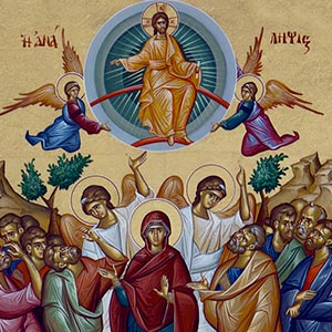 KONDAK, gl. 6.: Ispunivši naum našega spasenja, i sjedinivši zemaljsko s nebeskim, uznesao si se u slavi, Kriste Bože naš! Unatoč toga nisi se odijelio od nas, nego i dalje prebivaš među nama te kličeš onima koji Te ljube: Ja sam s vama, i nitko ne može protiv vas!