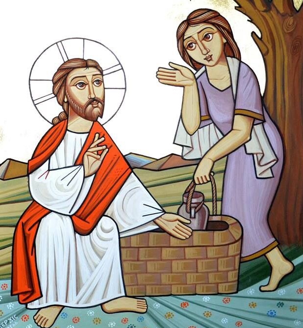 Upravo tako izmučenom i ispaćenom čovjeku dolazi Gospod Isus, solidaran s ljudima u zemaljskim uvjetima života toliko da i sam osjeća tjelesnu žeđ, te da nema čime zahvatiti vodu. Svjesno je htio biti upućen na ljude, od kojih i sam traži da mu dadnu piti. Toliko je dijelio ljudsku stvarnost da je žeđao za vodom poradi tjelesne žeđi, kako bi nama dao one vode nakon koje se više ne žedni, a koje ne možemo bez njega zahvatiti iz Božjeg srca i života. U takav kontekst se smješta događaj opisan u današnjem Evanđelju, te razgovor koji se vodi između Isusa i žene Samarijanke. Sveti Ivan Zlatousti, opažajući Gospodnju profinjenost, ističe kako Isus potiče ženu na razmišljanje uzdižući joj srce do savršenijih spoznaja za kojima žeđa svaki čovjek. Isus joj pristupa na tako delikatan način kako bi u njoj razbudio vjeru u njega, u njegovu uzvišenost i po kojoj je veći od samoga Jakova koji je iskopao i ostavio zdenac svome sinu Josipu kod Sihara. Isto tako on je poziva da povjeruje u poslanje kakvo nije imao nijedan čovjek ni prije niti će imati poslije njega. A kako joj ne bi zatvorio vrata pristupa u punu spoznaju vjere, dopušta joj da mu čak predbaci nedosljednost koja nije bila svojstvena židovima, jer je tražio piti od žene, i k tome Samarijanke. A kad ga je upitala je li možda on veći od praoca Jakova, nije odgovorio odmah izravno, nego joj je dao vremena da sama shvati, što će ona i pokazati u trenutku kad ište od njega vode nakon koje se ne žeđa.