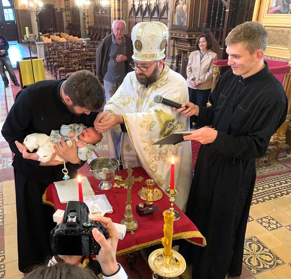 Na blagdan Preminuća sv. Ivana Bogoslova, apostola i evanđeliste, 26. rujna 2020., u grkokatoličkoj katedrali Presvete Trojice, novoimenovani križevački vladika Milan Stipić krstio je Šimuna Mesaroša, šesto dijete Silvija i Marusje rođene Simunović. Šimun je unuk grkokatoličkog svećenika i katedralnog župnika u Križevcima, o. Mihajla Simunovića. Djetetov krsni kum bio je o. Mladen Mikulić, jerođakon i monah. Prema bizantskom obredu novokrštenik Šimun primio je odmah i svetu tajnu miropomazanja (potvrdu).