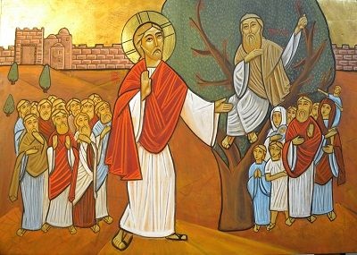 U ono vrijeme Isus uđe u Jerihon. Dok je prolazio gradom, dođe čovjek imenom Zakej, utjecajan židov koji je radio za rimsku poreznu upravu i vrlo se obogatio. želio je vidjeti Isusa, ali je bio prenizak rastom da bi ga mogao vidjeti preko mnoštva. On zato potrči naprijed te se popne na smokvu pokraj koje je Isus trebao proći da s nje promatra. Kad je Isus stigao do njega, pogleda gore i reče mu: 'Zakeju, brzo siđi! Danas moram k tebi u goste.' Zakej žurno siđe s drveta i primi ga u goste sav radostan. Ali mnoštvo koje je to promatralo počne prigovarati: 'Otišao je takvom grešniku u goste!' A Zakej ustane i reče Gospodinu: 'Gospodine, polovicu svojega imanja dat ću siromasima, a svakome koga sam prevario četverostruko ću vratiti.' 'Danas je u ovu kuću došlo spasenje jer je i ovaj čovjek Abrahamov sin! Ja, Sin Čovječji, došao sam tražiti i spasiti izgubljene.' (Luka 19, 1-10)