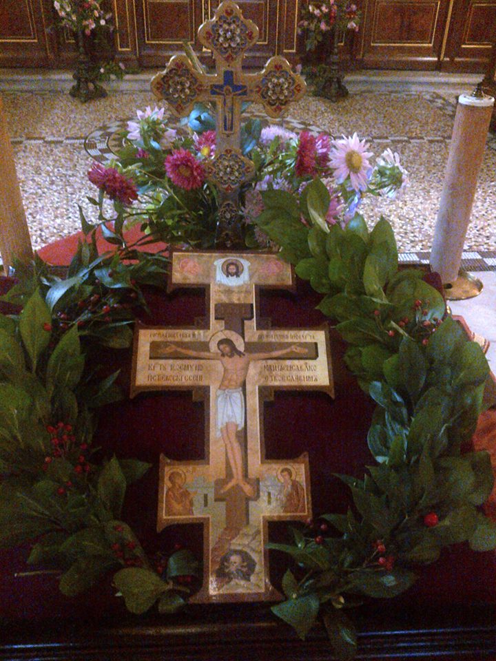 KONDAK: Uzašao si dragovoljno na križ, Kriste Bože. Narodu svome novome, imenom tvojim nazvanim, podaj milosti svoje. Silom svojom razveseli svetu Crkvu i daj joj pobjedu nad neprijateljima, jer samo od tebe ima ona pomoć, oružje mira i sigurnu pobjedu.