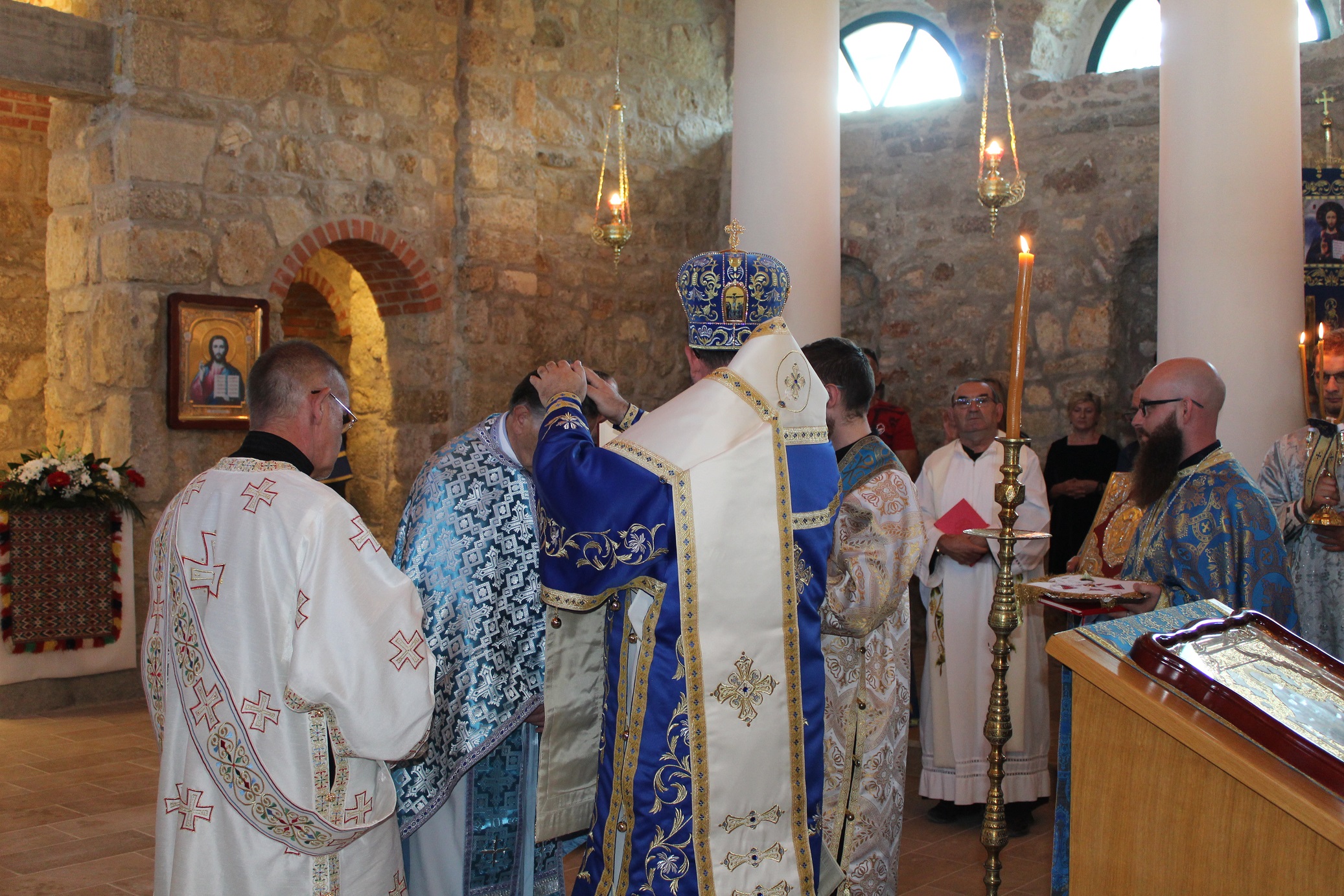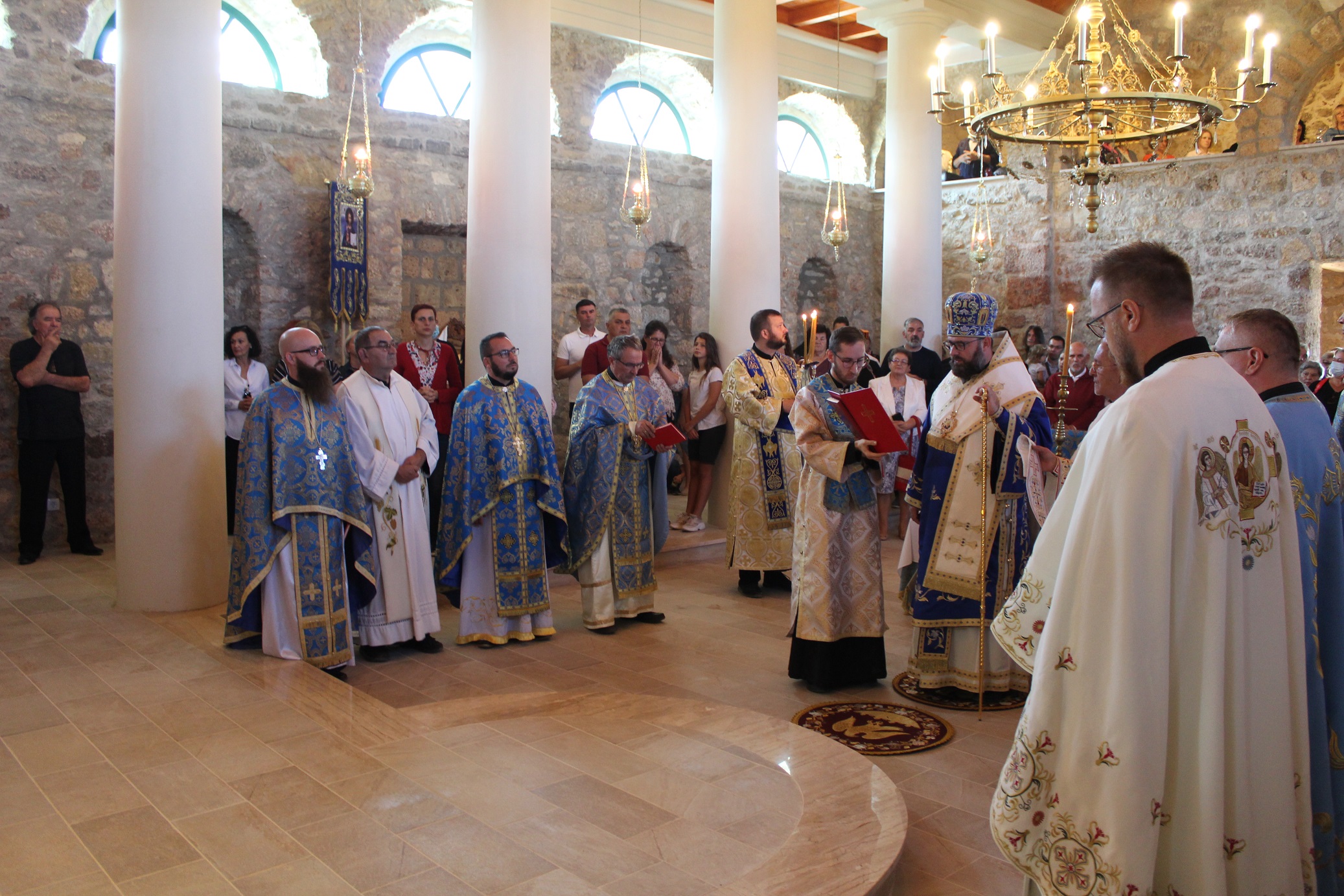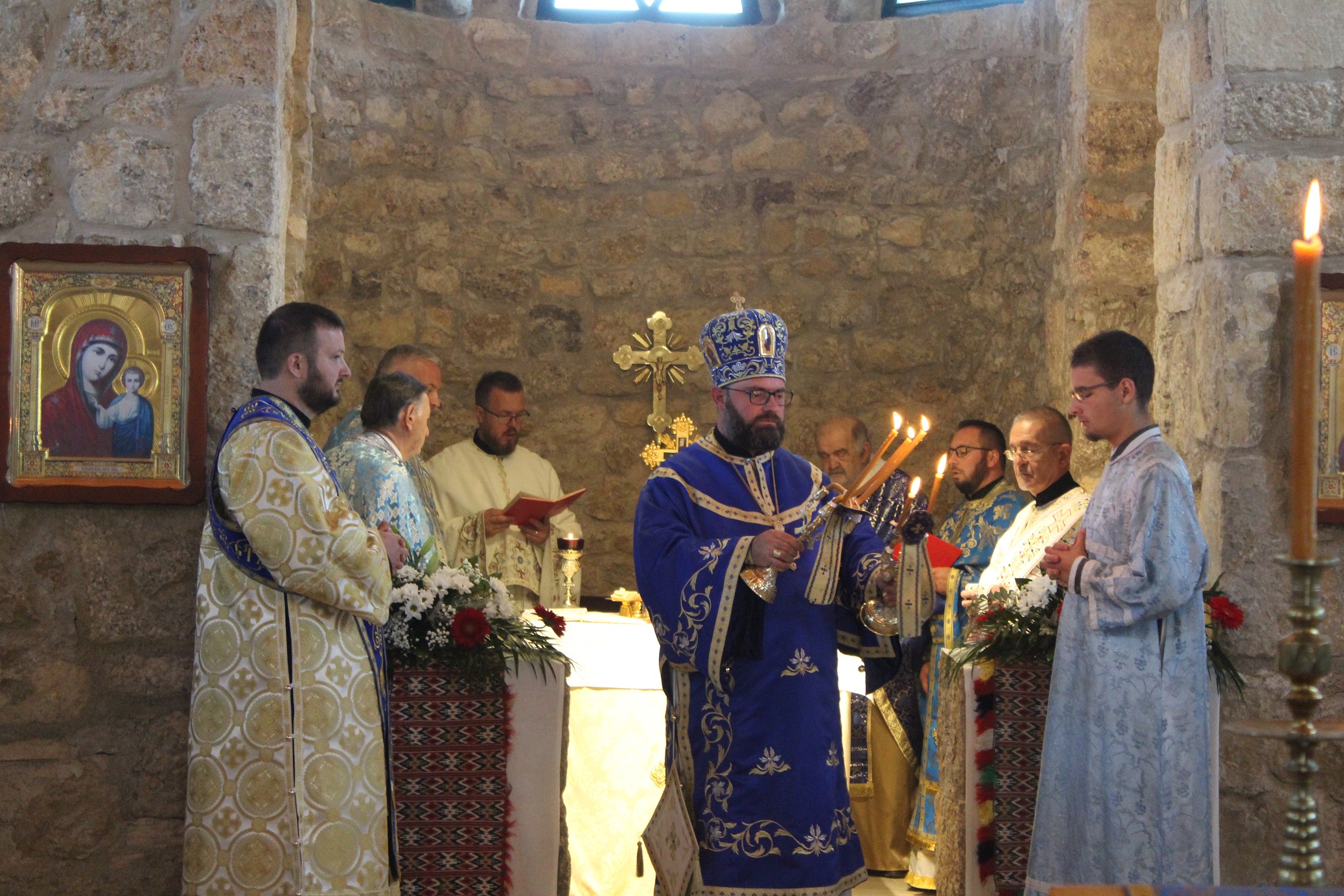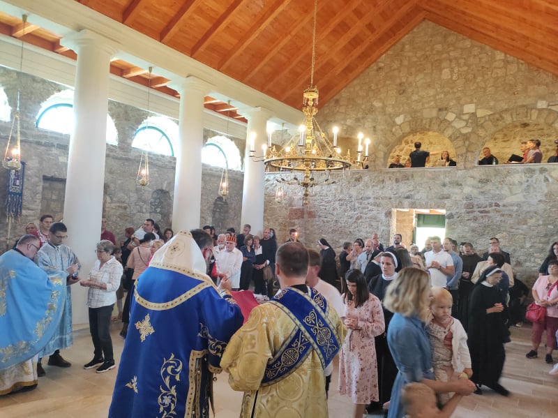 grkokatolike Dalmacije, osobito u teškim vremenima kada nije bilo ni stalnog svećenika, ni crkve za okupljanje. U homiliji je vladika Milan rekao: ''Bog je htio postati čovjekom, jednim od nas, i proći sve naše patnje, muke, radosti i iskušenja, preuzeti na sebe sve naše. To je najveće čudo naše vjere. Bio je našim dionikom u svemu, osim u grijehu. A zašto ne u grijehu? Jer ni mi nismo stvoreni za grijeh. Grijeh ne pripada Božjem dobrom naumu stvaranja. On nam je nametnut padom naše ljudske naravi kao nešto strano. U Božjem smo naumu stvoreni za svetost i bogolikost. Pogledajmo samo malu djecu. Ona su nevina od grijeha. Zašto? Jer nisu još upoznali zloću svijeta i slična su našem nebeskom Ocu'' - istakao je vladika Milan. ''Ovaj je hram posvećen Onoj po kojoj je Bog to čudo učinio, po kojoj je Bog sišao k nama, i ona predstavlja ljestve tog silaska, ali i našega uzlaska k Bogu. I ovaj hram presvete Bogorodice upravo to uprisutnjuje. Ovdje sada imamo ljestve nebeske po kojoj nam silazi Bog. I njoj u čast je sagrađena ova crkva da bi se Božji ljudi mogli okupljati, primati oproštenje grijeha, hraniti se svetim sakramentima. Pokrov Bogorodice znači ogrtač, plašt, zaštita, a ovaj je blagdan nastao pred više tisuća godina u Carigradu, kada su sveti Andrija Jurodivi i sveti Epifanije za vrijeme teške opsade grada ugledali presvetu Bogomajku kako skida svoj pokrov i njime pokriva ljude, stavljajući ih tako pod svoju zaštitu. Taj simbol, znak njezine prisutnosti i prisnosti s nama nazivamo ''pokrovom'' presvete Bogorodice. I njoj je posvećen ovaj hram i ovo svetište da bude uprisutnjenje majčinske zaštite naše nebeske Majke među nama'' – kazao je vladika Milan. ''Gradnja crkve je simbol naše duhovne izgradnje, naše duhovne borbe kojom se mi kao ljudi izgrađujemo u hram Božji, i tome služi ova crkva'' – naglasio je biskup Stipić, pozvavši vjernike da se okupljaju, mole, primaju svete sakramente i radosno žive svoju vjeru pod zaštitom presvete Bogorodice. Na kraju liturgije, zahvalnu riječ izrekli su fra Ivan Ćupić, zatim župnik kričanski i zadarski te ujedno čuvar svetišta o. Jan Jakubov, koji se posebno zahvalio brojnim dobročiniteljima i radnicima koji su se žrtvovali da se radovi što brže privedu kraju, te protojerej stavrofor o. Mile Vranešić, župnik Stojdrage, Grabra i Samobora, koji se u najtežim godinama u ovom kraju trudio sačuvati i crkvu i imovinu ove raspršene i rušene grkokatoličke crkve i župe. Na kraju svečane liturgije svi su vjernici primili pomazanje sv. uljem i imali prigodu moliti se pred ikonom Bogorodice Kričanske. Na pročelju crkve postavljena je i nova spomen ploča čiji natpis glasi: ''Ovaj Božji hram, bijaše sagrađen 1836. godine u čast Pokrova presvete Bogorodice, paljen je 1943. godine, rušen 1993. godine, a obnovljen i ponovno posvećen 2021. godine za vrijeme pape Franje i vladike križevačkoga Milana. Pod tvoju milost pribjegajem, Bogorodice Djevo''.