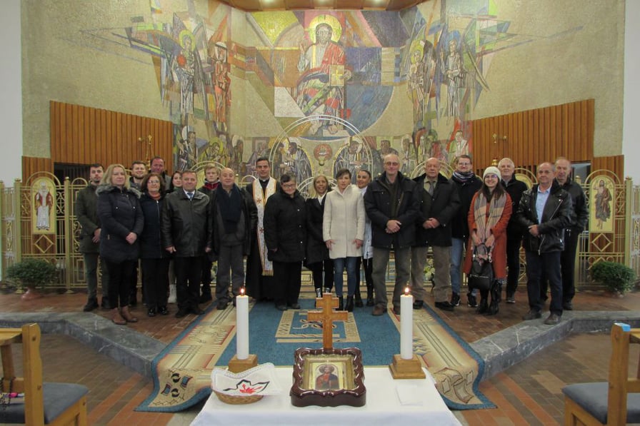 vukovarskog župnika o. Vladimira Magoča, zagrebačke hodočasnike pozdravio je petrovački župnik o. Vladimir Sedlak. Tumačeći u kontekstu vukovarskih ratnih stradanja povijest grkokatoličke duhovne prisutnosti u Gradu heroju, o. Vladimir kratko se osvrnuo na bitnije crte iz prošlosti vukovarske župe. Pjevajući marijansku hodočasničku pjesmu: „O Marije, Mati Božja prečista“ i zajedničkim slikanjem, ovjekovječen je posjet grkokatoličkoj duhovnoj oazi grada Vukovara. U popodnevnim satima, nakon domjenka, zagrebački hodočasnici prošetali su vukovarskom šetnicom i posjetili muzej Vučedolske kulture.