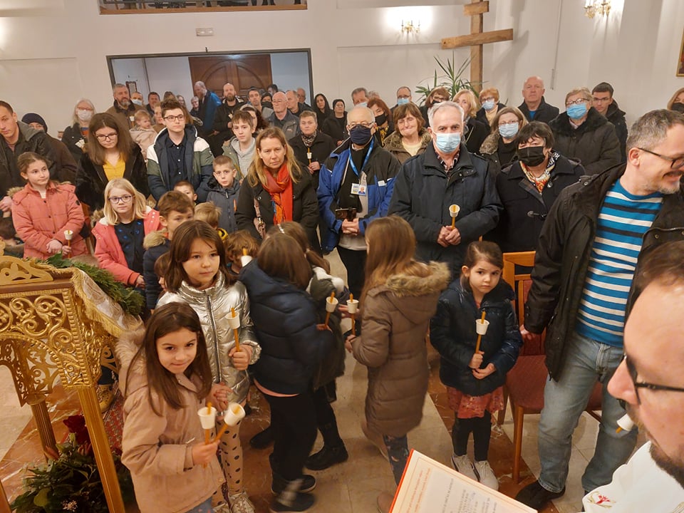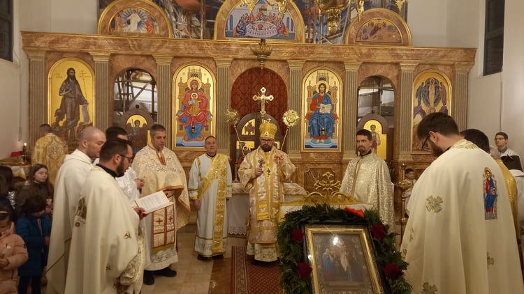 U srijedu, 2. veljače, na blagdan Susreta Gospodnjega u Hramu (Svjećnica), u grkokatoličkom hramu Preobraženja Gospodnjega u Jastrebarskom, gdje se čuvaju i časte relikvije sv. Šimuna Bogoprimca, vladika križevački Mimlan Stipić služio je svečanu blagdansku liturgiju u zajedništvu s domaćim župnikom o. Marjanom Jeftimovim, žumberačkim vikarom o. Danielom Vranešićem, eparhijskim ekonomom o. Danijelom Hranilovićem i brojnim drugim grkokatoličkim i rimokatoličkim svećenicima. Na liturgiji je sudjelovalo mnogo mladih obitelji s djecom kao i predstavnici Grada Jastrebarskog na čelu s gosp. Nikolinom Ribarić, zamjenicom gradonačelnika. U homiliji je vladika Stipić protumačio teološki značaj i poruku blagdana, naglasivši kako se u još u drevnoj kršćanskoj tradiciji, osobito na istoku, evanđeoski događaj o prikazanju Isusa u jeruzalemskom hramu poimao kao susret Boga i njegova naroda, u kojem je Bog došao ususret izabranom narodu koji je personificiran u liku svetog starca Šimuna, koji je proročki sabrao sva proročanstva Staroga zavjeta u ispovijesti Krista - Mesije i Spasitelja. Ocrtao je značaj svetoga Šimuna kao pravednika koji je dočekao ispunjenje ne samo svoga proročkoga i svećeničkoga života susrevši Krista, već i cijeloga izraelskoga naroda, a onda i cijeloga novoga Izraela koji će povjerovati u Krista i postati novi izabrani narod kršćana. Vladika Stipić je izložio put kojim su ostatci sv. Šimuna kao dragocjena relikvija putovali iz Svete zemlje u Carigrad, a zatim dospjeli do Zadra i na koncu jedan djelić njegova neraspadnutoga tijela i u grkokatoličku crkvu u Jastrebarsko, gdje se danas one časte i pred kojima se mnogi mole i bivaju uslišani. Na koncu je vladika Stipić poručio kako su evanđeoske vrijednosti bitne za opstanak i obitelji i naroda i civilizacije, osvrnuvši se i na lošu demografsku sliku naše domovine. ''Propadanje jednoga društva i jedne civilizacije ne može se svesti na ovoga ili onoga političara, nego najviše na propadanje obitelji kao svete i od Boga utemeljene ustanove i osnovne životne ćelije društva. Kada se ne žive evanđeoske vrjednote propada obitelj, a onda propada pomalo sve, pa i čitavi narodi i društva, unatoč svekolikom tehničkom i ekonomskom napretku'' - istaknuo je biskup Milan, pozivajući vjernike da žive svoju krsnu vjeru u obiteljima i čuvaju obitelj kao najveće dobro. Poslije svete liturgije pred moćima sv. Šimuna održan je blagoslov brojne okupljene djece i blagoslov svijeća koji se tradicionalno vrši na ovaj blagdan. Na koncu liturgije župnik o. Marjan Jeftimov se zahvalio biskupu na dolasku i kratko prikazao tijek oslikavanja stropa iznad oltara freskama u čemu je župi pomogao i grad Jastrebarsko i na čemu se župnik zahvalio.