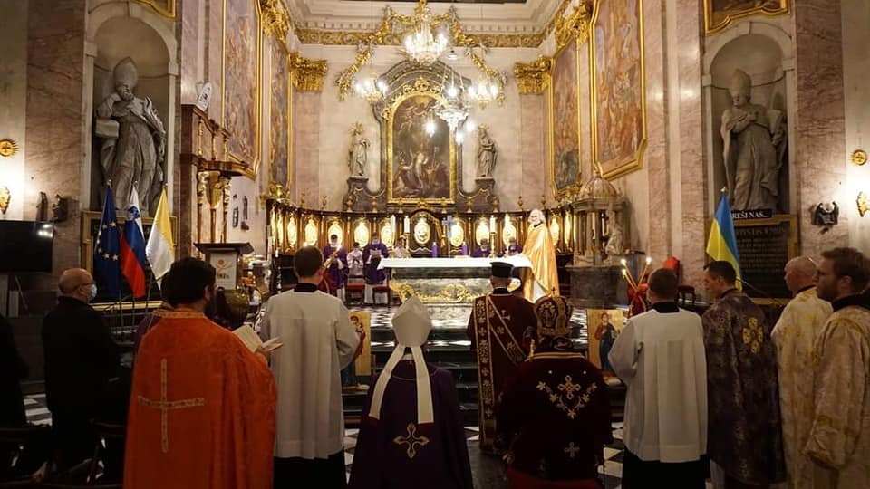 U subotu, 5. ožujka 2022., u Katedrali sv. Nikole u Ljubljani, na poziv nadbiskupa i metropolita ljubljanskoga mons. Stanislava Zorea, vladika križevački Milan Stipić služio je liturgiju za mir u Ukrajini. Liturgiji su nazočili nadbiskup Stanislav Zore, pomoćni biskup Ljubljane Anton Jamnik, , apostolski nuncij u Republici Sloveniji mons. Jean Marie Speich te veleposlanici Republike Ukrajine i Republike Poljske u Sloveniji. S biskupom Milanom služio je mons. Andrej Saje, biskup Novog Mesta, grkokatolički svećenici koji pastoralno djeluju na području Slovenije o. Ivan Skalivskyi, o. Mihajlo Hardi i o. Gorazd Bastašić te đakon Livio Marijan, a koncelebrirali su i rimokatolički svećenici iz Ljubljane. Liturgiju sv. Ivana Zlatoustoga je pjevao Ekumenski muški zbor iz Ljubljane, a sudjelovalo je mnoštvo vjernika. Biskup Milan je u homiliji sve pozvao na molitvu za mir i za okončanje rata u Ukrajini te pozvao sve kršćane da otvore svoja srca i prime izbjeglice iz Ukrajine kao što bi primili samoga Krista koji nam je jasno kazao: ''bijah stranac i primiste me''. Istakao je kako su Ukrajinci slavenski narod koji je vrlo blizak i jezikom i mentalitetom drugim slavenskim narodima, kao i to da je to duboko kršćanski narod, plemenit i vrijedan. ''Molimo se za mir jer mir nema alternativu, a tvorac mira je Svevišnji Bog'' naglasio je mons. Stipić. O događaju je prilog napravila i slovenska nacionalna televizija: https://365.