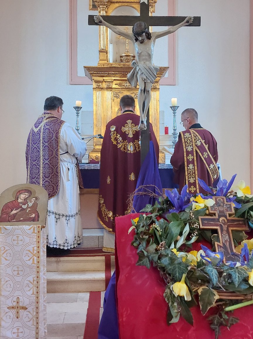 Na Križupoklonstvenu nedjelju, 20. ožujka 2022., u rimokatoličkoj župnoj crkvi Rođenja Marijina u Selinama kod Zadra, služena je grkokatolička liturgija sv. Bazilija Velikog na kojoj su se okupili izbjeglice iz Ukrajine i domaći župljani. U Selinama boravi pedesetak žena s djecom i mladima iz okolice Lavova koji su grkokatolici te je domaći župnik don Tomislav Končurat za njih organizirao liturgiju. Liturgiju su služili grkokatolički župnik Splita o. Zenjo Zastavni, đakon Livio Marijan i župnik Končurat, a pjevanje na ukrajinskom i hrvatskom predvodili su pjevači iz Zadra te sami Ukrajinci. Svi su mogli sudjelovati u liturgiji koja je bila projicirana na zidu u dvojezičnom stupcu. U homiliji je o. Zastavni rekao Ukrajincima da oni sada na poseban način nose s Kristom križ, koji je uvijek znak ljubavi i pobjede dobra nad zlim i života nad smrću. Zahvalio se domaćim župljanima Selina na njihovoj dobroti, naglasivši da im je ove Korizme ukazan poseban blagoslov da ugoste Krista u izbjegloj braći. Poslije liturgije upriličeno je zajedničko druženje ispred crkve gdje su Ukrajinskoj djeci podijeljeni darovi koji su donijeli i skupili brojni dobri ljudi iz Selina i Zadra. Na početku liturgije mlada glazbenica Kristina Byra, koja inače svira u Lavovskoj filharmoniji, na violini je odsvirala jednu skladbu. Domaći župnik don Tomislav pohvalio je Ukrajince na njihovoj pobožnosti, naglasivši kako redovito svi dolaze u crkvu i nedjeljom i preko tjedna na pobožnost Križnog puta. O Ukrajincima u Selinama, koji sada tamo borave kao izbjeglice, a prijašnjih su godina tamo ljetovali sa svojim svećenicima, skrbi Crveni križ i Caritas Zadarske nadbiskupije te župljani Selina koji su jako dobro organizirani oko humanitarne pomoći svojoj subraći u izbjeglištvu. O ovom događaju napravila je prilog Hrvatska radiotelevizija i emitirala u središnjem Dnevniku.