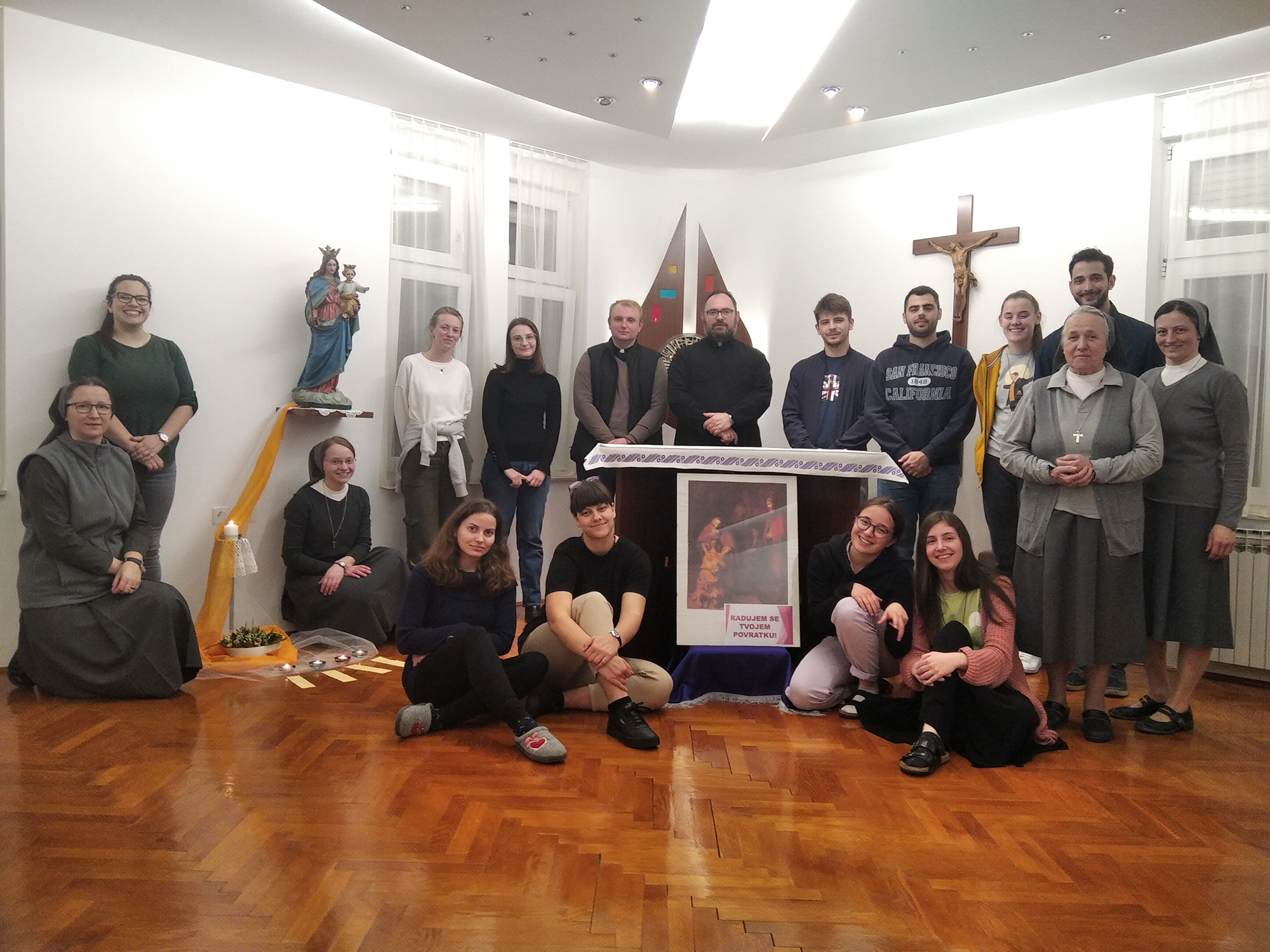 čovjeka jer stanje duha upravo stvara mentalitet čovječanstva. Mi kršćani vjerujemo da za mir treba odgajati, u duhu mira treba voditi dijalog i među narodima i među crkvama i među religijama. Kršćanska je perspektiva uvijek teološka i duhovna te uključuje cjelovitoga čovjeka, a čovjekov duh je upravo najbitniji za mir i za odgoj - naglasio je biskup Stipić. Zato se i papa i Crkva zalaže za unaprjeđenje dijaloga na svim razinama, a unutar Crkve se osobito treba zauzimati za mir molitvom i evanđeoskim stilom života u našim malim zajednicama, u župama i obiteljima, jer upravo tu počinje odgoj za mir. Na koncu susreta biskup Stipić je s mladima izmolio dijelove Papine molitve za posvetu svijeta, Ukrajine i Rusije Bezgrješnom Srcu Marijinu, što je uz duhovne pjesme bila zajednička večernja molitva. Na koncu je okupljenim mladima podijelio i blagoslov. Među njima bili su bivši učenici salezijanskih sestara, zatim kandidatkinje, predstavnica studentica KDS "Laura" te mladi iz raznih župa.