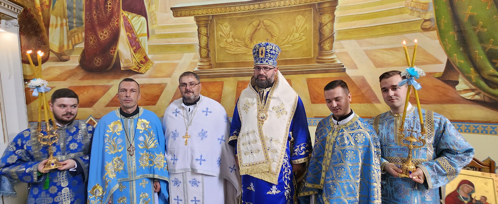gdje je s tamošnjim grkokatoličkim svećenstvom te svećenicima križevačkd eparhije o. Nenadom Krajačiće, ravnateljem eparhijskoga Caritasa i župnikom Pribića, te o. Olegom Zakaljukom, župnikom Vukovara i Rajeva Sela, te brojnim narodom služio svečanu arhijerejsku liturgiju. U homiliji je vladika Stipić istaknuo značaj Bogorodice Marije i njenog molitvenog zagovora u životu kršćana. ''Isus se u svojoj najvećoj ljudskoj boli pobrinuo za svoju majku, povjerivši je svom učeniku. Na taj način nam je pokazao koliki značaj u našem životu imaju upravo majke, a onda i obitelji. Nije ni čudo da se zlo ovoga svijeta u posljednje vrijeme okomljavaju upravo na majčinstvo i na obitelj. Obitelj, koju tvore majka, otac i djeca jesu slika Trojedinoga Boga i ikona božanske ljubavi, a ne tek neki proizvoljni društveno-povijesni konstrukt. Cijeli svijet i svi narodi stoje ili padaju s obitelji kao temeljnoj stanici društva'' naglasio je biskup Milan. ''I hrvatski narod je prošao muku rata u obrani svoje domovine, kao što sada prolazi ukrajinski narod. Tisuće i tisuće nevinih života i mladih branitelja polažu svoj život za ideale slobode i u obrani svojih obitelji, domova i domovine. Mučna je to i teška, ali i sveta i časna dužnost čovjeka braniti svoje ognjište, svoje dostojanstvo i svoj narod. Mi suosjećamo s ukrajinskim narodom i njihovom žrtvom u ovome času i molimo se Bogu za pravedan mir i za Ukrajinu i za Rusiju i za sve narode svijeta. Istovremeno se trudimo pomoći koliko možemo i u izbjegličkoj krizi i u karitativnom pomaganju jer smo kao kršćani i kao ljudi uvijek pozvani biti na strani ugroženoga čovjeka i onoga koji je u potrebi i koji pati'' - rekao je vladika Stipić. Istaknuo je i povijesne veze Mukačevske i Križevačke eparhije, budući da i u Križevačkoj eparhiji postoje župe i naselja čiji su župljani i stanovnici podrijetlom Rusini iz ove drevne eparhije koja već stoljećima ima posebni status vlastitoga prava. Caritas Križevačke eparhije jej u više navrata organizirao i poslao humanitarnu pomoć dječjim domovima, bolnicama i izbjegličkim centrima u Zakarpatskoj Ukrajini gdje i sada borave brojne izbjeglice iz ratom pogođene istočne Ukrajine.