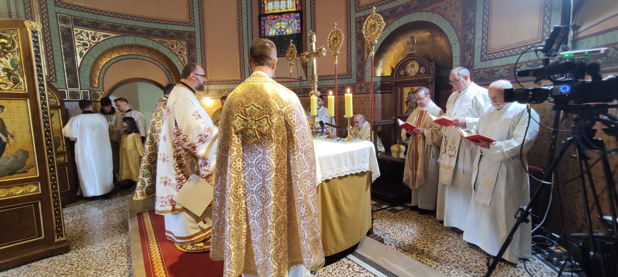 U subotu, 10. prosinca 2022., u grkokatoličku konkatedralu sv. Ćirila i Metoda u Zagrebu svečano su položene moći svetoga Bazilija Velikoga, koje je još pred više stotina godina Grkokatoličkoj Crkvi u Hrvatskoj darovao kardinal sveti Robert Bellarmin. Čin polaganja moći u posebno za to pripravljeno mjesto u crkvi s ikonom svetoga Bazilija održao se na početku arhijerejske liturgije koju je služio vladika križevački Milan Stipić uz susluženje župnika zagrebačkoga, upravitelja Grkokatoličkog sjemeništa i biskupskog vikara o. Daniela Vranešića, katedralnog župnika križevačkog i sjemenišnog duhovnika o. Mihajla Simunovića, eparhijskog kancelara o. Vladimira Simunovića, brojnih grkokatoličkih i rimokatoličkih svećenika te đakona o. Antonija Pajića. Liturgiju, koju je prenosila Laudato televizija, su pjevala tri zbora: Ćirilo-Metodov kor u muškom i mješovitom sastavu te zbor mladih, a nazočili su joj bogoslovi sjemeništa, članovi Viteškog reda sv. Groba Jeruzalemskog, sestre bazilijanke, Žumberčani u narodnim nošnjama i brojni vjernici. Vladika Stipić je u homiliji istaknuo kako je prije sadašnje crkve sv. Ćirila i Metoda na tom mjestu bila manja crkva posvećena upravo sv. Baziliju Velikom te je dostojno i pravedno da njegove svete moći budu u toj crkvi. Sveti Bazilije Veliki Rodio se godine 329. u Cezareji, u pokrajini Kapadociji, u obitelji svetaca, od bogatih i bogobojaznih roditelja Bazilija i Emilije. Iz te obitelji potječe više svetaca, među njima Bazilijev brat sv. Grgur Nisenski i sestra sv. Makrina. Školovao se u Novoj Cezareji, Carigradu i u Ateni. Uputio se u Egipat, Siriju, Mezopotamiju i Palestinu da vidi kako tamo žive monasi. Po povratku proda imanje što ga naslijedi od oca i podijeli siromasima, a sam ode u pokrajinu Pont i u planinama uz Crno more sagradi manastir. Za brojne monaha Bazilije je napisao Velika i Mala pravila, koja su do danas izvorom pravila monaškog života cijeloga kršćanskog Istoka. Za svećenika je zaređen 364. godine, a 370. izabran je za biskupa Cezareje. Uz svoju rezidenciju dao je sagraditi gostinjac za putnike i strance te bolnicu. Cijeloga života vodio je veliku borbu protiv krivovjernih Arijevaca. Umro je 1. siječnja 379. godine kada bizantska Crkva slavi njegov blagdan. Bazilije je napisao mnoga bogoslovska, apologetska, monaška i pravna djela. On je sastavio i liturgiju koja se služi više puta u godini. Časti ga Istok i Zapad kao jednog od najvećih teologa i otaca Crkve - kazao je vladika Stipić, ocrtavši Bazilijev bogat život. ''U ovim vremenima u kojima živi ovaj naš svijet riječi ovoga velikoga biskupa i oca padaju nam kao iscjeliteljski melem. Danas se sav svijet usmjerio na zadovoljavanje hedonističkih potreba te se Bog izbacuje iz životnih normi, a ljudi koji se zalažu za vrijednosti ismijavaju i ponižavaju. Stječe se dojam da se polako i sigurno gradi vrijeme kada će iskreni Kristovi učenici biti progonjeni i moći živjeti svoju vjeru i u katakombama. Ipak, naš je zadatak u ovome svijetu širiti Kristovu vijest spasenja i otkupljenja, neprestano i posvuda, kako bi ga sav svijet upoznao. Stoga nam je ovaj veliki svetac ujedno i veliki zagovornik, pomoćnik i molitelj u našem duhovnom i apostolskom životu, te primjer kako se hrabro i iskreno živi Evanđelje'' naglasio je biskup Milan. Na koncu liturgije vjernici su častili svete moći i bili pomazani svetim mirom. Crkva svetog Bazilija časti posebnim liturgijskim himnima koji sažimlju svu njegovu veličinu: