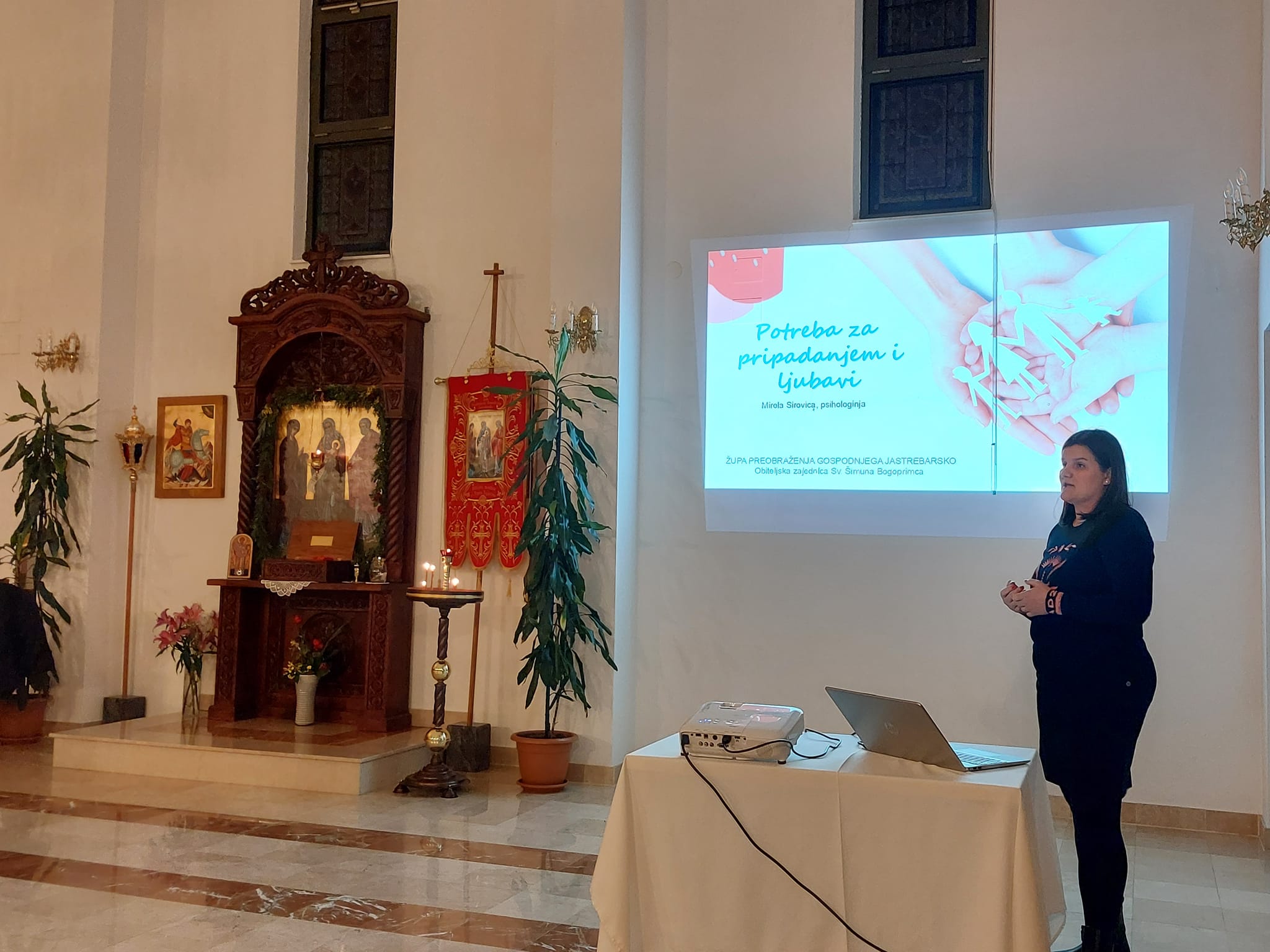 U srijedu, 15. veljače 2023., Obiteljska zajednica "Sveti Šimun Bogoprimac" održala je svoj mjesečni susret u župnoj crkvi Preobraženja Gospodnjega u Jastrebarskom. Zajednica, koja je osnovana na blagdan Preobraženja Gospodnjega 6. kolovoza 2022., na poticaj i pod vodstvom župnika o. Marjana Jeftimova, redovito se susreće jednom mjesečno, svake treće srijede u mjesecu. Nakon Akatista sv. Šimunu i molitve za zdravlje i potomstvo, koje se svake srijede održava u crkvi pred moćima sv. Šimuna, prigodno predavanje na temu "Potreba za pripadanjem i ljubavi" održala je jaskanka i žumberčanka, Mirela Sirovica, profesorica psihologije.
