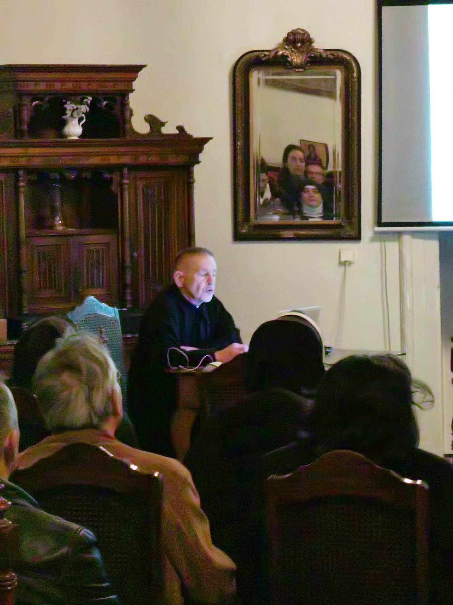 rezidencije prof. o. Livio Marijan, đakon Križevačke eparhije, održao je prezentaciju pod nazivom ''Askeza kao ravnoteža - Sveta Četrdesetnica ili Korizma u istočno-kršćanskoj duhovnosti''. Predavanje koje je bilo popraćeno slikama i grafikonima, ocrtalo je bitne značajke teologije askeze i posta prema tradiciji svetih otaca rane Crkve i bizantske duhovne tradicije. Četrdesetnica je najznačajniji post u cijeloj crkvenoj godini, u kojoj bizantska katolička tradicija poznaje još četiri posta (božićni, apostolski uoči sv. Petra i Pavla i Bogorodini uoči Velike Gospe). Naziva ga se i pashalni ili uskršnji post jer je upravo to vrijeme intenzivna priprava za središnji kršćanski blagdan Uskrsa ili Pashe Gospodnje. Budući da živimo u vremenu prilično naglašenog i agresivnog hedonizma, koji čovjeku današnjice nudi površan i umjetan bijeg od tzv. ''mučnine egzistencije'' svagdašnjeg života, asketizam u vidu samokontrole, odmaka od svijeta, uzdržavanja od određene hrane i štetnih navika osobito je važan vid povratka čovjeka na svoju iskonsku bit. Naime, osnovno antropološko polazište kršćanske vjere da je čovjek izvorno stvoren kao dobar, na sliku Božju te je jedinstvena ikona Božja. Ta čovjekova izvorna dobrota i uravnoteženost nagrđena je i narušena prvim grijehom i padom, čime je čovjek u svojoj biti ranjen, njegova narav poremećena, a njegov odnos prema prirodi, drugim ljudima i Bogu je postao neuravnotežen. Sveti su oci naučavali da se upravo askezom - suzdržavanjem, čovjek vježba u postupnom povratku prema svojoj izvornoj slici ikona Božje i ispravlja neravnotežu svoje pale naravi koja ga čini nesretnim, neumjerenim, agresivnim i depresivnim. Brojni današnji psiholozi sve češće govore o negativnom učinku neumjerenosti i nekontroliranog hedonizma na čovjekovu psihu. ''Kao što je Adam svojim neposluhom izgubio božansko obličje kada nije prema Božjoj odredbi postio u Edenskom vrtu te postao neuravnotežen, tako je kasnije prototip kršćanina - veliki Mojsije, postom i poslušnošću postao gledateljem Božje slave i primio zakon zapovijedi. A Krist je svojim boravkom u pustinju, postom i krajnjoj poslušnošću nebeskom Ocu usavršio i posvetio tu spasonosnu askezu te nam dao primjer i pouku o istinskoj askezi. Tako se iz Adamova stanja kaosa (nereda) ponovno uspostavlja Kristovo novo stanje kozmosa, reda i sklada'' naglasio je đakon Marijan. Osim posta od određene hrane i štetnih navika u određeno vrijeme koje Crkva propisuje, sveti su oci osobito naglašavali duhovnu dimenziju posta. ''Sveti Ivan Zlatousti tako kaže: 'Post je promjena čitavoga našeg života, jer prava žrtva (smisao) posta nije suzdržavanje od mesa nego suzdržavanje od grijeha. Dakle, svatko tko ograničava post na uzdržavanje od hrane, taj zapravo ismijava i karikira post. Ako postiš, pokaži mi to na djelima. Kojim djelima? Ako vidiš nekoga siromašnoga, iskaži mu milosrđe. Vidiš li neprijatelja, izmiri se s njime. Vidiš li prijatelja koji je postao uspješan, ne budi zavidan i ljubomoran. Vidiš li lijepu ženu, ne obaziri se. Dakle, ne trebaju samo usta postiti, već i oči i noge i ruke i svi dijelovi tijela također. Neka ruke poste, ostajući čiste od krađe i pohlepe. Neka noge poste, izbjegavajući puteve koji vode ka grijehu. Neka oči poste tako što neće pogled zaustavljati na tuđoj ljepoti i zamamnosti.' Upravo je to ono što je Krist svojim učenicima naložio kad je u pitanju post, svodeći sve na bitan zakon ljubavi prema Bogu i bližnjemu'' rekao je predavač. Tijekom prezentacije izneseni su i neki konkretni i praktični savjeti o vršenju kršćanske askeze danas kao što su praćenje i obdržavanje crkvenih propisa o postu u određene dane, sudjelovanje u sakramentalnom i liturgijskom životu Crkve, osobnoj molitvi, čitanju Evanđelja i Psaltira te drugih duhovnih knjiga, a osobito mijenjanju svagdanjih loših životnih navika koje s vremenom mogu postati čovjekovom naravi. Tijekom Velikoga posta u grkokatoličkim se crkvama redovito služi jedinstvena i posebna služba - tzv. Liturgija pretposvećenih darova, a koja se sastoji od Večernje i pričesti s euharistijom koja je posvećena na liturgiji prethodnog dana, slično kao što se u rimskom obredu služi na Veliki petak, gdje vjernici imaju priliku primijeniti askezu kroz cjelodnevni post te na kraju dana se pričestiti. Citirajući stihove i molitve iz Posnog tropjesneca ili Triodiona, svetootačke liturgijske himnografije koja se tijekom Četrdesetnice u bizantskom katoličkom obredu služi, đakon Marijan je sve potaknuo da se odvaže krenuti putem kršćanske askeze koja je zdrava i za dušu i za duh i za tijelo: 'Primimo navještaj posta s radošću! Da je naš praotac Adam držao post mi ne bismo bili lišeni raja. Voće koje nas je usmrtilo bijaše lijepo za oko i ukusno za hranu i stoga se ne dajmo zavarati očima jer kada se pojede postaje bezvrijedno. Bježimo od neumjerenosti da ne budemo nadvladani strastima kad se nasitimo…' kako se moli u velikoposnim liturgijskim himnima. Na kraju prezentacije, vladika Milan Stipić se zahvalio predavači i brojnim nazočnima te sve blagoslovio za dobar, duhovan i plodonosan Veliki i časni post svete Četrdesetnice koje počinje s Čistim ponedjeljkom, 20. veljače.