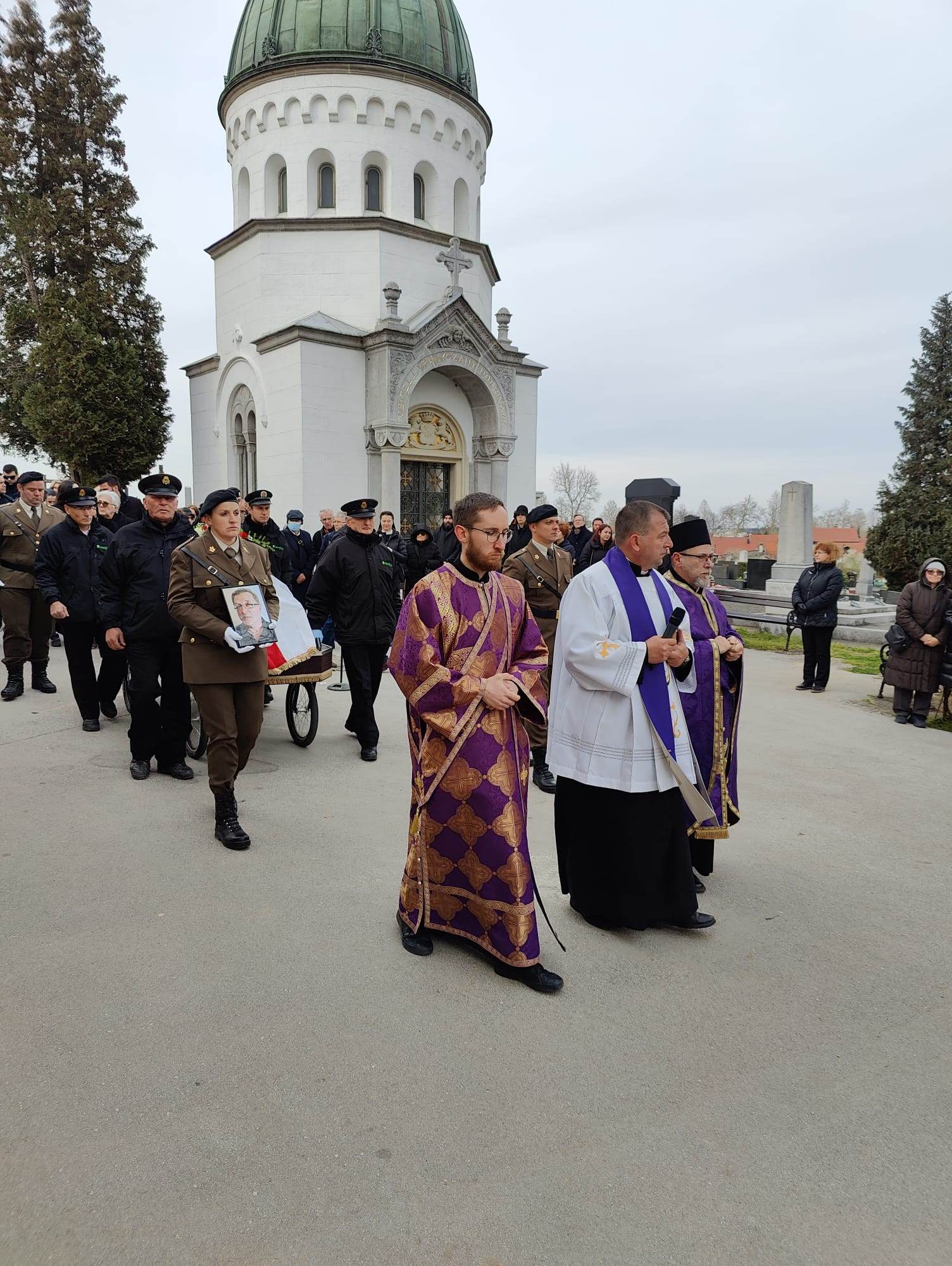 U subotu, 1. travnja 2023., preminuo je Dinko Kraljević, višegodišnji predvoditelj pjevanja u Grkokatoličkoj crkvi Uzvišenja sv. Križa u Karlovcu. Rođen je 27. studenoga 1953. godine u Mostaru. Nakon mature u gimnaziji u Mostaru, završio je Filozofski fakultet u Zagrebu 1977. godine kao profesor francuskog i hrvatskog jezika. Od 1977. do 1987. godine radio je u CUO 'Pavao Lozo' u Imotskom kao profesor francuskog jezika. Od 1988. do 1991., u IV. osnovnoj školi Bjelovar i Osnovnoj školi Grđevac kao profesor hrvatskog i francuskog jezika, a od 1991. do 1993 kao lektor na Hrvatskom radiju. Od 1993. godine radio je kao lektor i korektor, savjetnik za izdavaštvo te integraciju naučenih lekcija u Ministarstvu obrane Republike Hrvatske. Dinko je lektorirao većinu tekstova vojih djela izdanih u Hrvatskoj vojsci t e sudjelovao u stvaranju hrvatskog vojnog nazivlja i standardizaciji izričaja u Hrvatskoj vojsci. U grkokatoličkoj crkvi u Karlovcu dvadesetak godina redovito je predvodio pjevanje liturgije i drugih obreda na žumberačkom prostopjeniju. Bio je dobar pjevač, koji je s osobitom ljubavlju pjevao na liturgiji, jednostavan i blage naravi, vrlo ozbiljan u radu i obvezama. Redovito je i rado odlazio na hodočašća te bio zauzeti član župne zajednice. Sa suprugom je imao troje djece. Sahranjen je na groblju Dubovac u Karlovcu, u utorak 4. travnja. Vječni mu spomen u Kraljevstvu nebeskom.