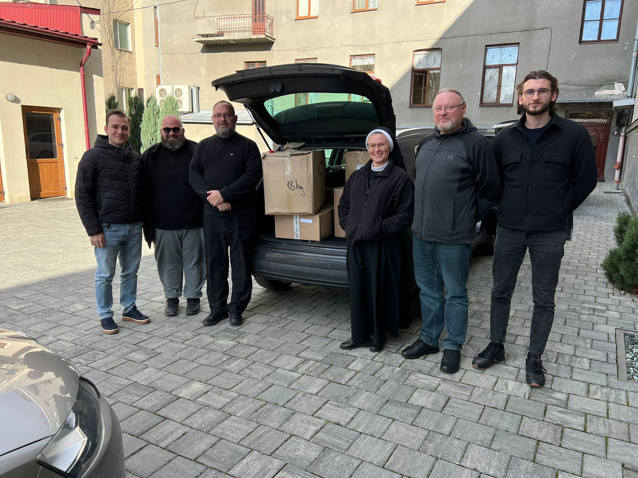 Vladika Stipić je u pratnji o. Ante Jurkovića, bogoslova Ivana Delmate Bilića i drugih dopremio nastavnu opremu i interakcijske stolove za dječji vrtić i dom za nezbrinutu djecu pri Samostanu sv. Josipa sestara Bazilijanki kojega vodi s. Veronika Galatan OSBM, a koja je neko vrijeme bila članicom Bazilijanki u Hrvatskoj. Pomoć je dar Caritasa Križevačke eparhije i Udruge Dobro dobrim ''DoDo'' iz Velike Gorice.