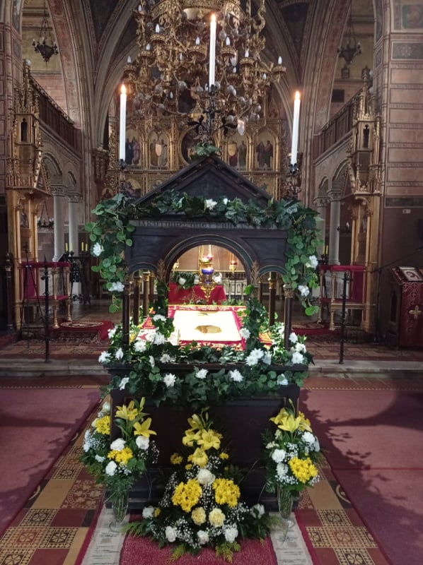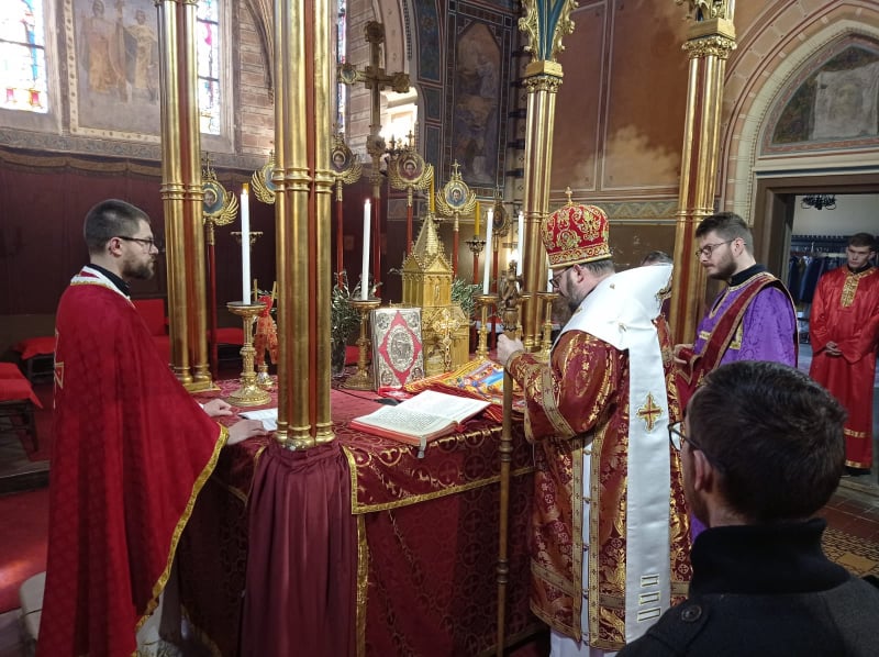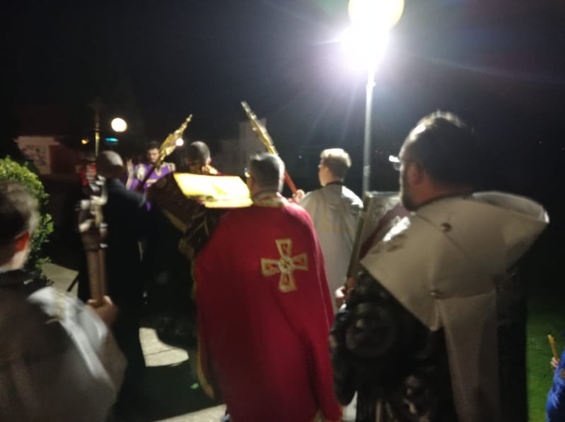 Vladika križevački Milan Stipić predvodio je službe Svetog i velikog četvrtka, petka i subote u grkokatoličkoj katedrali Presvete Trojice. S vladikom su služili o. Mihajlo Simunović, župnik križevački, o. Vladimir Simunović, eparhijski kancelar, o. Andrij Savyak i jerođakon Mladen Mikulić. Na Veliki četvrtak vladika Milan je služio Liturgiju sv. Bazilija Velikoga u spomen Posljednje večere i posvetio ''antiminse'' (posvećena platna s moćima i ikonom Kristova ukopa) na kojima se na oltarima u grkokatoličkim crkvama služi sveta liturgija. Uvečer je služio Jutrenju Muke Gospodnje Velikoga petka s čitanjem dvanaest Evanđelja Muke. Na Veliki petak je ujutro služio Velike ili Carske časove (svečani dnevni časovi Muke Gospodnje) a poslije podne Večernju s polaganjem plaštanice (ukopnog platna) u Božji grob. Božji grob je napravljen usred katedrale, okićen cvijećem i osvijetljen lampadama, a uredili su ga monasi manastirskog bratstva. Pri kraju Večernje se u ophodu plaštanica polaže u grob, pred kojim se vrše prostracije (metanije) i koju vjernici obilaze čitavoga dana u molitvi. Navečer je služio Jeruzalemsku jutrenju (Jutrenja Velike subote) na kojoj se svečano pjevaju ''postaje'' u kojima zajedno s psalamskim stihovima pjevaju stihire koje opisuju ukop Kristov, njegovu žrtvu za spas svijeta i nadu u uskrsnuće. S plaštanicom se vršio i ophod oko katedrale. Na Veliku subotu ujutro vladika Milan je služio Liturgiju sv. Bazilija Velikoga koja predstavlja već preduskrsno bdjenje i na kojoj se liturgijska boja mijenja iz crnoga u bijelo. Na svim službama je sudjelovao veliki broj vjernika uz pridržavanje svih propisanih epidemioloških mjera. Prijenosi se mogu pogledati na facebook stranici: Grkokatolička Crkva u Hrvatskoj.