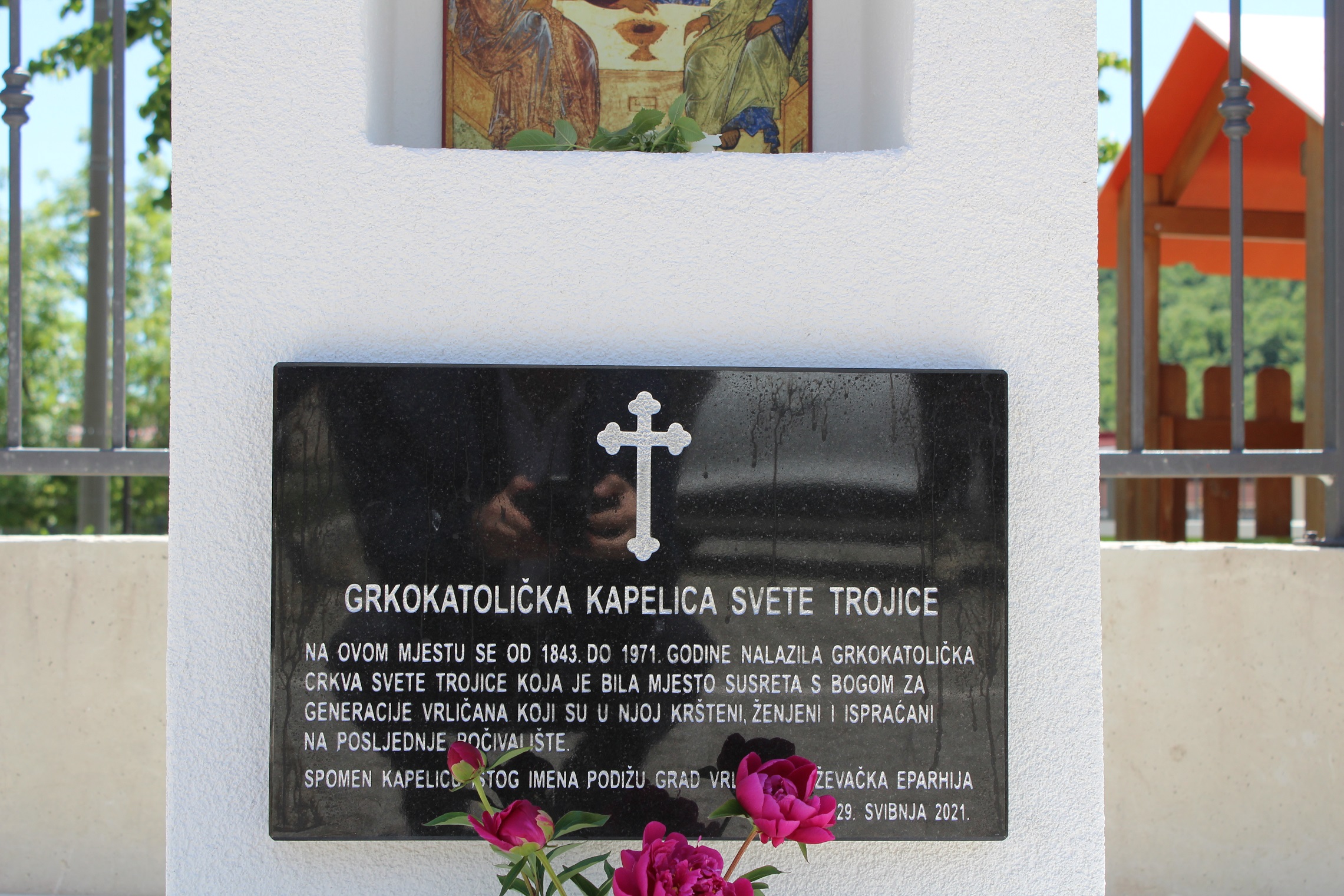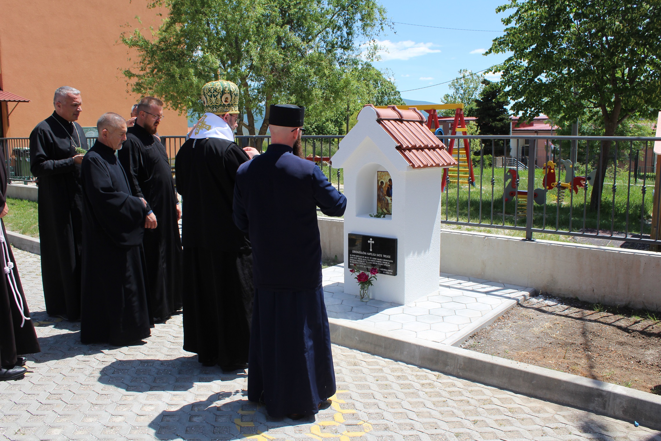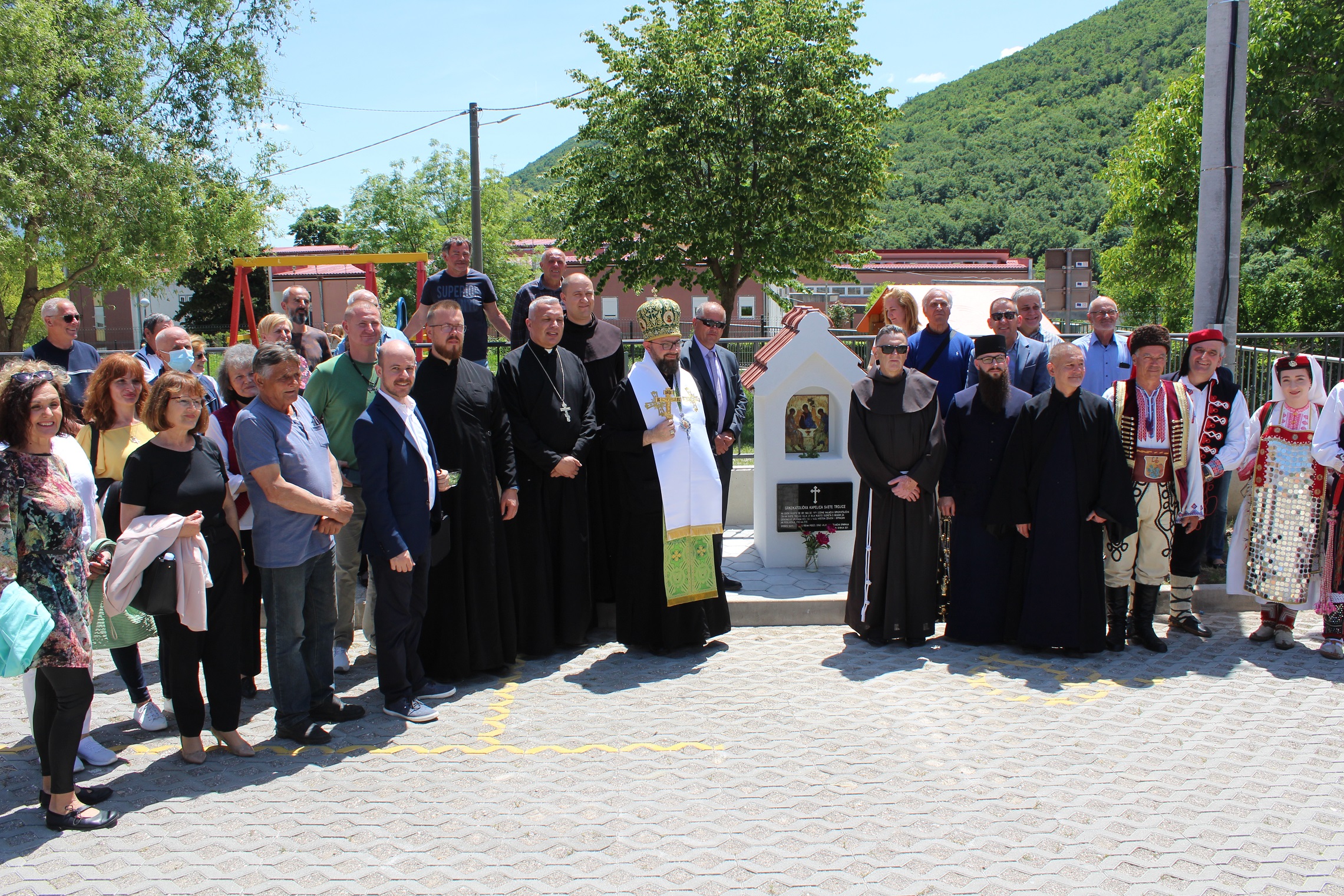 Program se nastavio na mjestu srušene crkve Presvete Trojice gdje je svečano blagoslovljena novosagrađena istoimena kapelica. Izgradnja kapelice dio je infrastrukturne i duhovne obnove grkokatoličkog Dalmatinskog vikarijata čiji su centri u Splitu i Zadru. Inicijativu za izgradnju je pokrenuo ing. Ivo Mišur koji je izradio i nacrte prema kojima se kapela izgradila dok je izvođenje financirala Križevačka eparhija. Kapelica je tlocrtnih dimenzija 0,63X0,63 m i visine metar i pol sa nišom u kojoj se nalazi ikona. Na kapelici se nalazi spomen ploča sa tekstom: