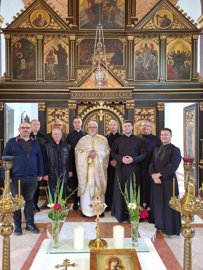 Svećenici Križevačke eparhije pastoralno djelatni u župama Slavonsko-srijemskog vikarijata okupili su se u subotu, 29. svibnja 2021., na drugi redoviti susret. Domaćin susreta je bio odnedavno imenovani grkokatolički župnik u Lipovljanima o. Nikola Stupjak, a pristigle svećenike u ime biskupa pozdravio je preč. Vladimir Sedlak, biskupski vikar za Slavoniju i Srijem. U skladu s tematskom godinom Euharistije u Križevačkoj eparhiji, tema svećeničkog susreta bila je: ''Euharistija – izvorište i vrhunac života Crkve.'' Razmatranju je prethodilo služenje Izlaganja najsvetijih Tajni, tj. klanjanje pred Presvetim Otajstvom, koja je svojevrsni istočni oblik euharistijskog čašćenja nastao iz višestoljetnog crkvenog zajedništva sa Zapadnom Crkvom. Nakon izlaganja teme te osobnog promišljanja o Euharistiji od strane sudionika, daljnji slijed susreta pod nazivom ''varia concreta'' moderirao je slavonsko-srijemski biskupski vikar preč. Vladimir Sedlak. Teme su bile: Planirano hodočašće sv. Josipu u Karlovac, te posjet jubilarnoj crkvi u Pribiću, pitanja vezana uz zdravstveno i mirovinsko osiguranje pojedinih svećenika, pravni status pojedinih struktura Križevačke eparhije u Slavonsko-srijemskom vikarijatu, izmjene podataka u adresaru Vikarijata, planirani ljetni odmori i zamjene, dogovor o vremenu i mjestu narednog susreta. Susret je nastavljen uz prigodni domjenak i druženje svećenika (V. Sedlak)