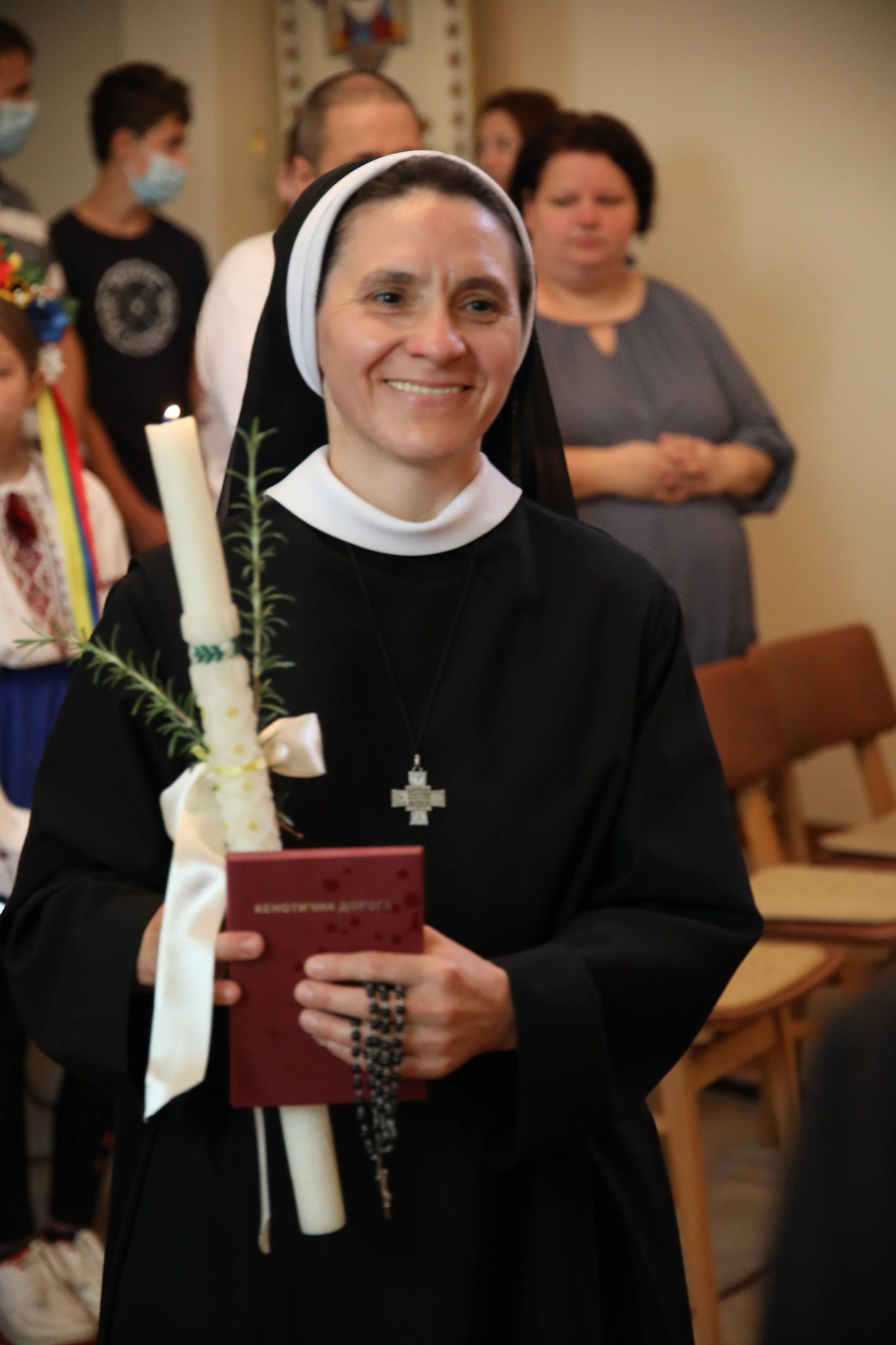 U nedjelju, 18. srpnja 2021., uoči blagdana sv. Makrine, sestre sv. Bazilija Velikoga, u manastirskoj kapeli Sestara bazilijanki (vasilijanki) u Osijeku, položila je doživotne zavjete Lesia s. Lavrentija Isyk. Liturgijsko slavlje je predvodio križevački vladika Milan Stipić, uz susluženje župnika osiječke grkokatoličke župe Krista Kralja o. Ljubomira Sturka te o. Romana Kandrača, duhovnika Grkokatoličkog sjemeništa u Ivano-Frankivsku, Ukrajina. Prije liturgije sestra Lavrentija molila je blagoslov od poglavarice za ovaj važan korak. Obred polaganja zavjeta odvijao se nakon Malog ulaza na liturgiji. Dok je sestra molila u prostraciji pokrivena crnim platnom, vjernici su pjevali stihire koje jednim dijelom pripadaju redu sprovoda jer polaganje doživotnih zavjeta je odreknuće od svijeta, potpuno predanje svoga života Kristu. Nakon toga u odgovorima na pitanja glavnog služitelja, s. Lavrentija potvrdila je da polaže zavjete slobodno i svjesno te pred otvorenom darohranilnicom (svetihraništem) izrekla je prisegu. Kao simbol doživotnog sjedinjenja s Kristom i monaškom zajednicom sestra je dobila blagoslovljeni prsten, Monaška pravila, krunicu i upaljenu svijeću kao simbol zaruka s Kristom i te ispunjenje njegovih riječi da kršćani trebaju biti svijetlo ovome svijetu. U propovijedi biskup Milan se nadovezao na nedjeljno evanđelje o Isusovom čudesnom umnažanju kruha. Učenicima koji su bili svjesni svojih ograničenih snaga Isus obećava da će blagosloviti njihovo zalaganje. Vladika Milan je naglasio kako su sestre bazilijanke uložile sve svoje snage u služenje u Križevačkoj eparhiji te je Gospod umnožio njihovo, po ljudskim mjerilima gledno, skromno predanje, a koje je urodilo bogatim plodovima u Crkvi. Slavlju su nazočile i arhimadrinja Reda Sestara bazilijanki (generalna poglavarica) časna majka Marčela Runcan te generalna savjetnica Reda s. Emanuela Vishka, kao i sestre bazilijanke Provincije sv. arkanđela Mihaela i Viceprovincije sv. Bazilija i Makrine, gosti iz Ukrajine te vjernici iz Osijeka i okolice. ČESTITKE!
