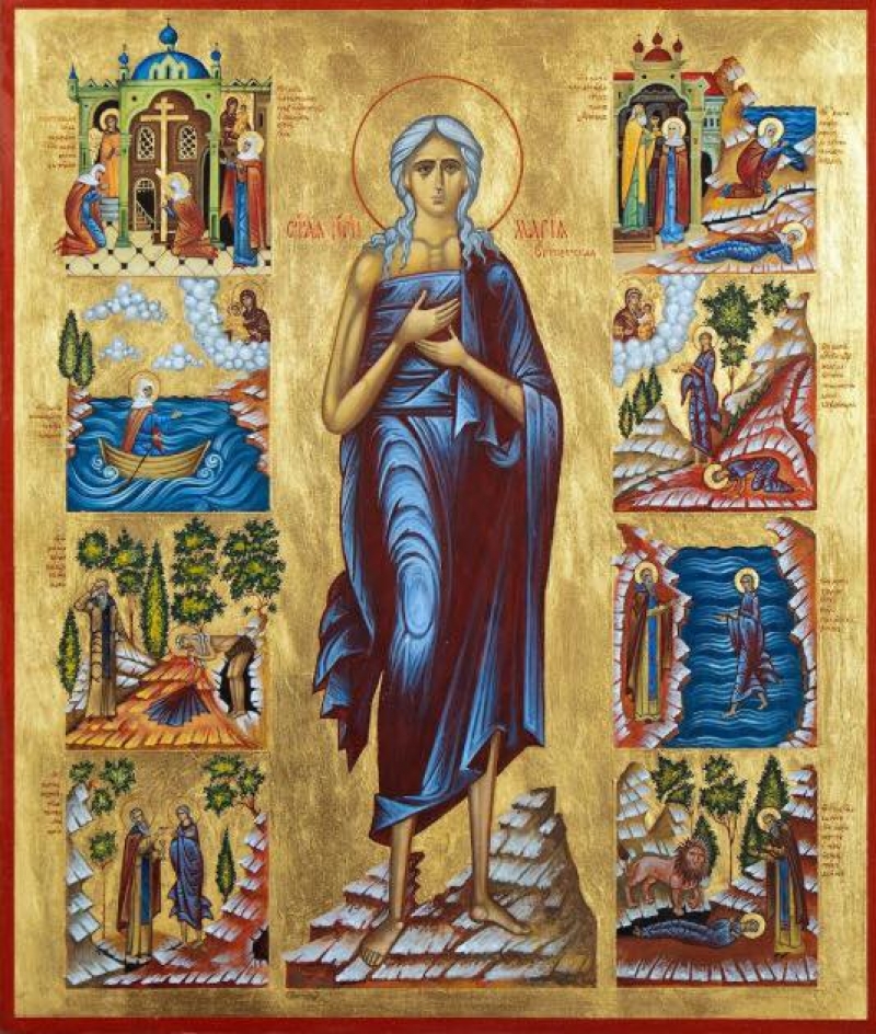 Rođena je u Egiptu. Već od svoje dvanaeste godine poče živjeti razvratno u gradu Aleksandriji. I tako punih 17 godina. Jednom pođe u Jeruzalem. Htjede stupiti u crkvu da se pokloni časnom Križu Gospodnjem, ali je neka nevidljiva sila zadržavala vani. U velikom strahu baci ona pogled na ikonu presvete Bogorodice u predvorju crkve i moljaše se njoj da joj dopusti ući u hram i cjelivati Križ, iskreno se kajući za grijehe koje je počinila. Obećala je Bogorodici da će poći tamo kamo ju ona uputi. Nakon te molitve slobodno uđe u crkvu i u suzama cjelivaše sveti Križ Isusov. Vrativši se u predvorje htjede zahvaliti majci Božjoj, no ču glas: «Ako pređeš Jordan, naći ćeš mir». Kupi zatim tri hljeba i uputi se k rijeci Jordanu. Sutradan se pričesti u manstiru sv. Ivana i prijeđe rijeku. Tu u jordanskoj pustinji proživi ona punih 48 godina boreći se s velikim napastima. Upokojila se oko 530. godine. Crkva ju spominje i pete nedjelje Svete četrdesetnice. Životopis njen napisao je sv. Sofronije, patrijarh jeruzalemski.