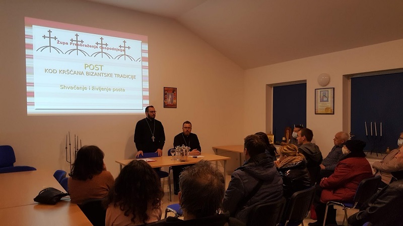 U srijedu, 10. ožujka 2021., poslije Liturgije pretposvećenih darova, u dvorani grkokatoličke župe Preobraženja Gospodnjega, održano je predavanje ''Post kod kršćana bizantske tradicije'', kojega su održali župnik Jastrebarskog o. Marjan Jeftinov i župnik Radatovića i Splita, o. Zenjo Zastavni. Uz prezentaciju govorili su o duhovnom značenju posta, o povijesti posta u kršćanskoj tradiciji te o načinima posta kod grkokatolika i drugih kršćana bizantske tradicije.